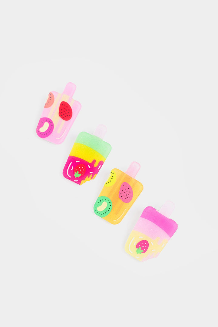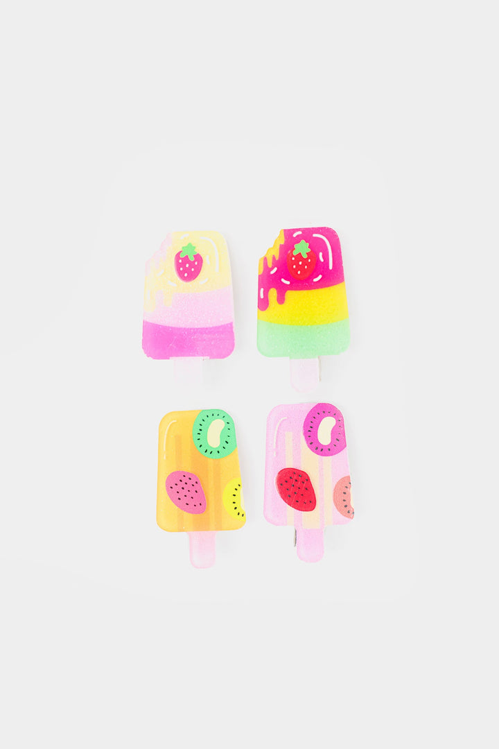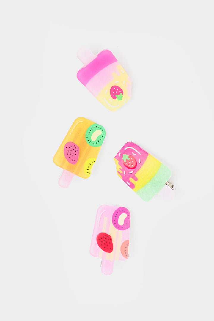 . Expertly crafted ice cream-shaped hair accessory adorned with colorful fruits for a playful touch. These stylish accessories add a pop of color to any hairstyle. Perfect for adding a touch of fun to everyday styles.
