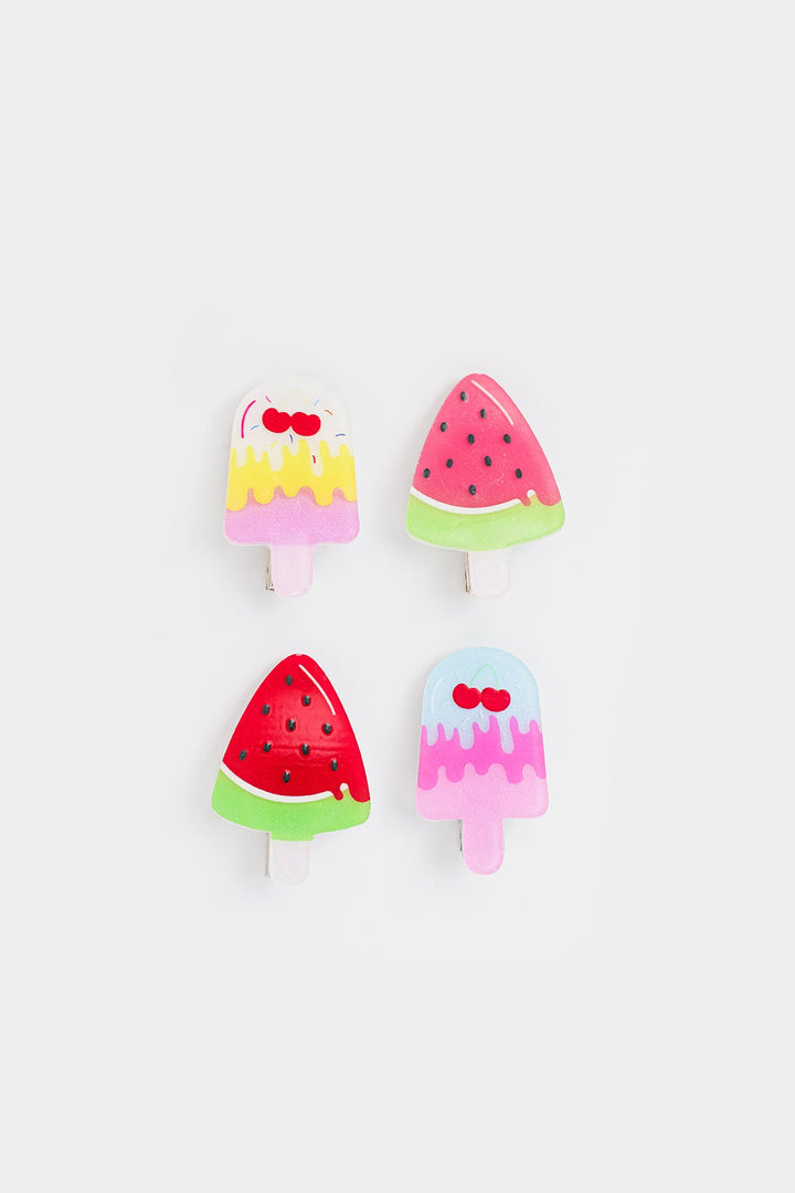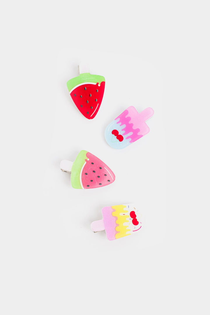 . Expertly crafted ice cream-shaped hair accessory adorned with colorful fruits for a playful touch. These stylish accessories add a pop of color to any hairstyle Perfect for adding a touch of fun to everyday styles.
