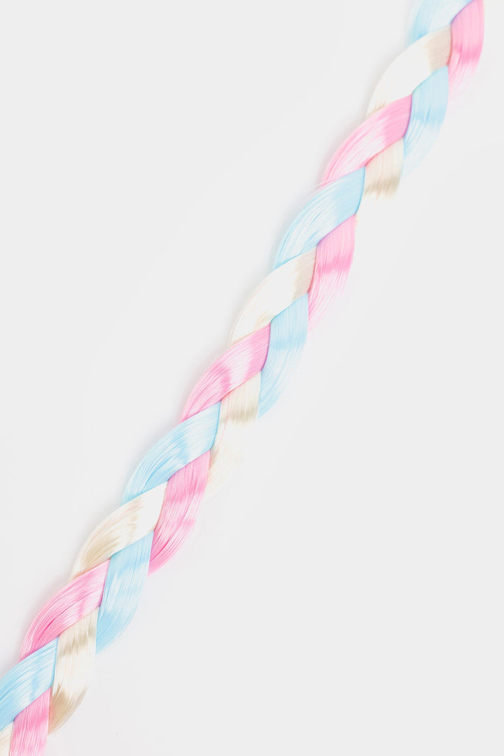 Add a playful twist to your hairstyle with this pastel braided scrunchie tail. It includes an extended braided strand ending in a tassel—perfect for adding a pop of color and charm to ponytails or braids. It's ideal for both casual and dressy looks.