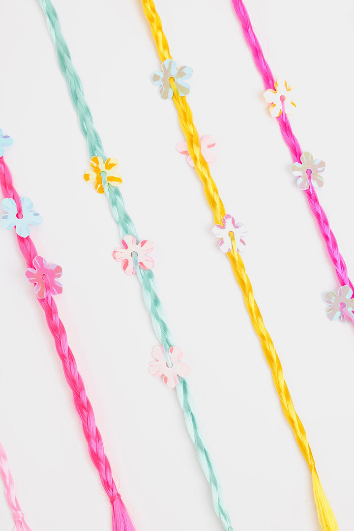 Add a playful twist to your hairstyle with this pastel braided scrunchie tail. Featuring soft pink, purple, and white hues, the scrunchie includes an extended braided strand ending in a tassel, perfect for adding a pop of color and charm to ponytails or braids. Lightweight and whimsical, it’s ideal for both casual and dressy looks.