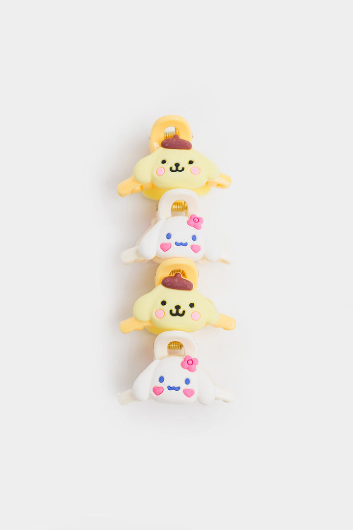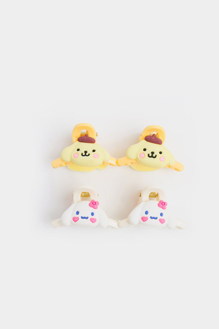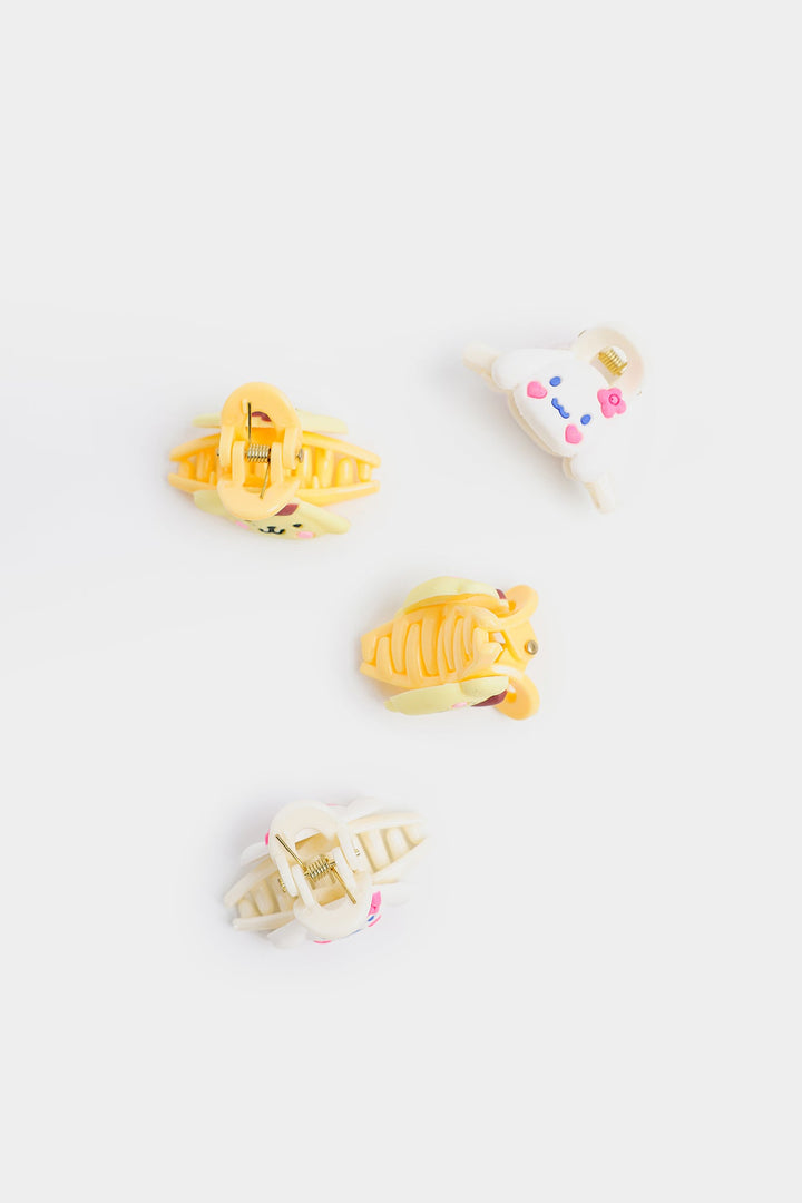 The clips shaped like a yellow cartoon puppy with a brown hat, pink cheeks with puppy has a cheerful and playful expression. Two clips shaped like a white cartoon bunny adding a cute and girly touch. These clips are ideal for kids and fans of cute, character-based accessories.