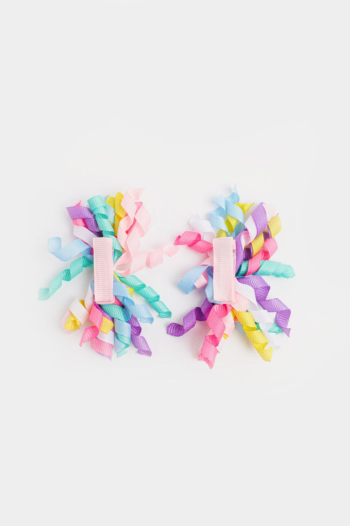 Add a playful pop of color to your little one’s look with these vibrant curly ribbon hair accessories! Featuring a cheerful mix of pastel and bright hues—like pink, aqua, yellow, lavender, and each hairpiece is crafted with soft, spiral ribbons that create a fun, bouncy effect. Perfect for ponytails and festive hairstyles.