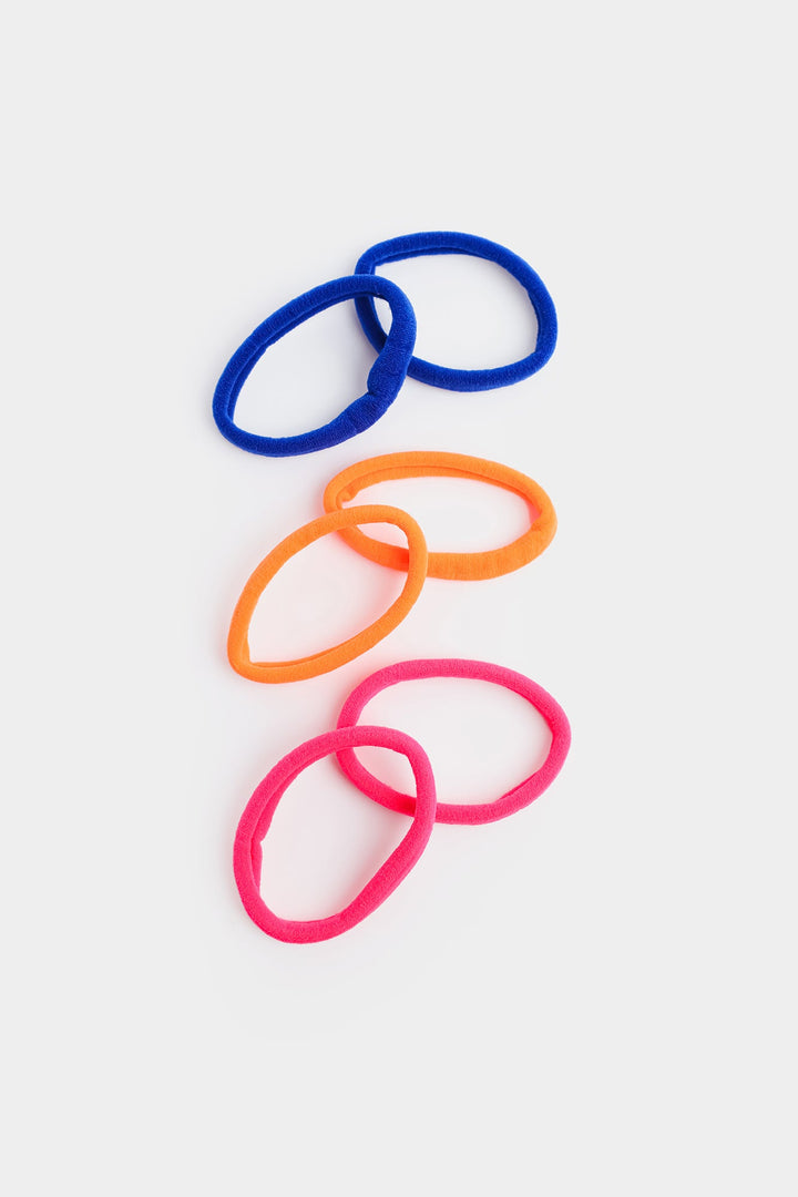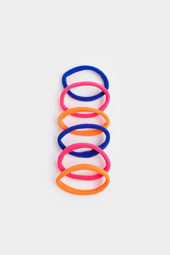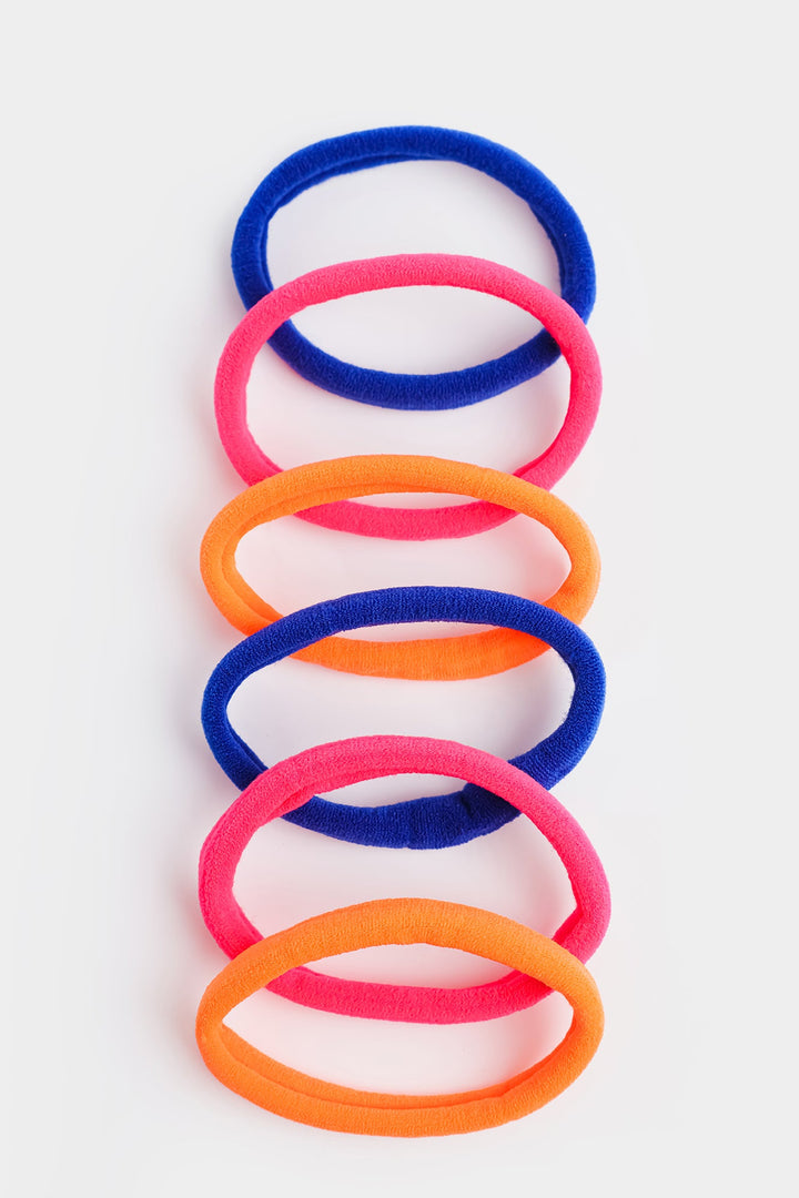 Add a pop of bright, cheerful color to any hairstyle with our essential hair tie set! This vibrant collection includes six durable and stretchable elastic hair ties, featuring two in a striking royal blue, two in a playful bright orange, and two in a lively fuchsia pink. Perfect for adding a fun accent to everyday looks, securing ponytails for sports activities, or simply keeping hair neatly in place, these ties are gentle yet provide a reliable hold.
