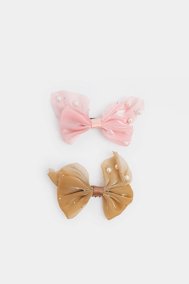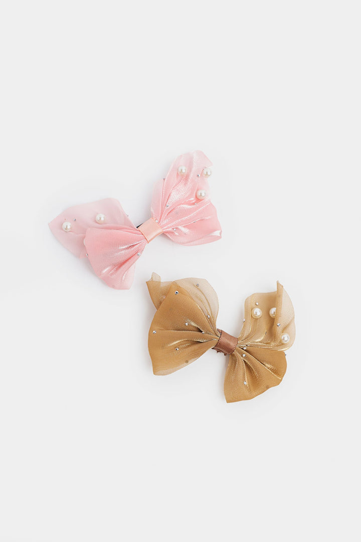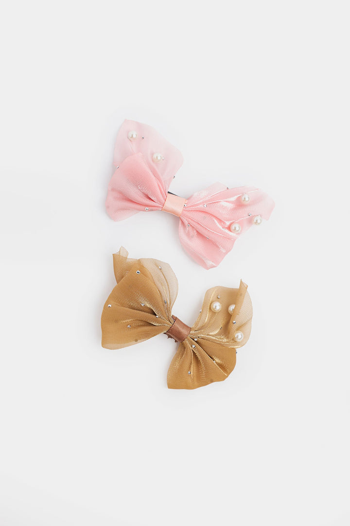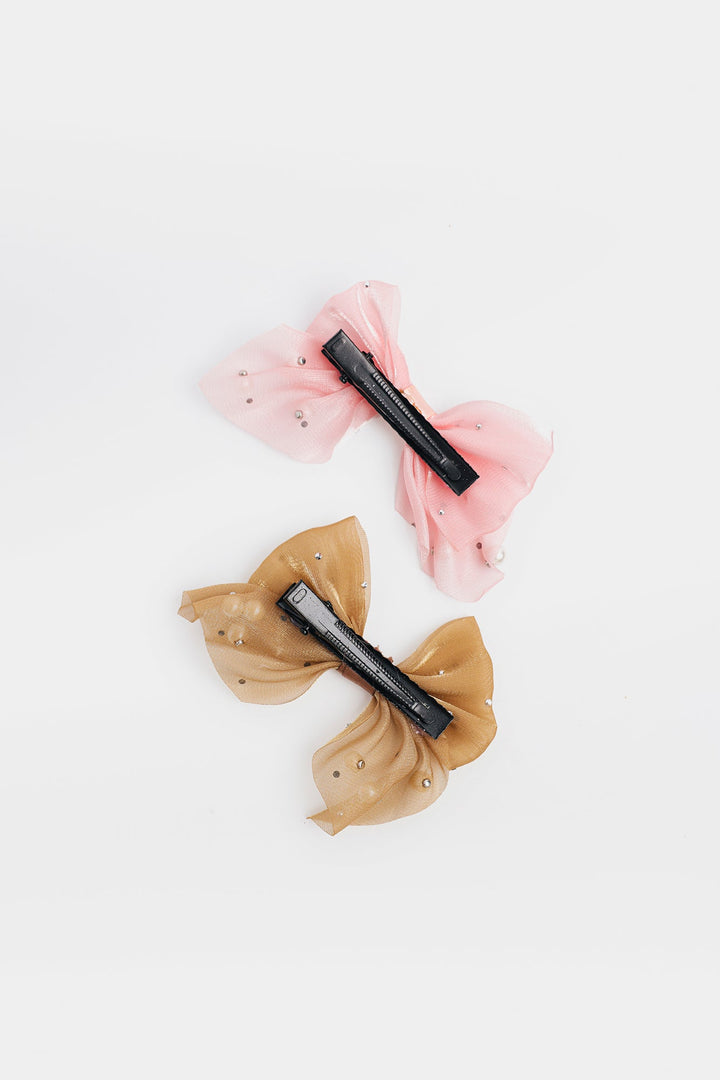 Elevate your hair game with this adorable pair of shimmering bow clips. Featuring vibrant pink and classic brown, they offer versatile sparkle for every outfit.
