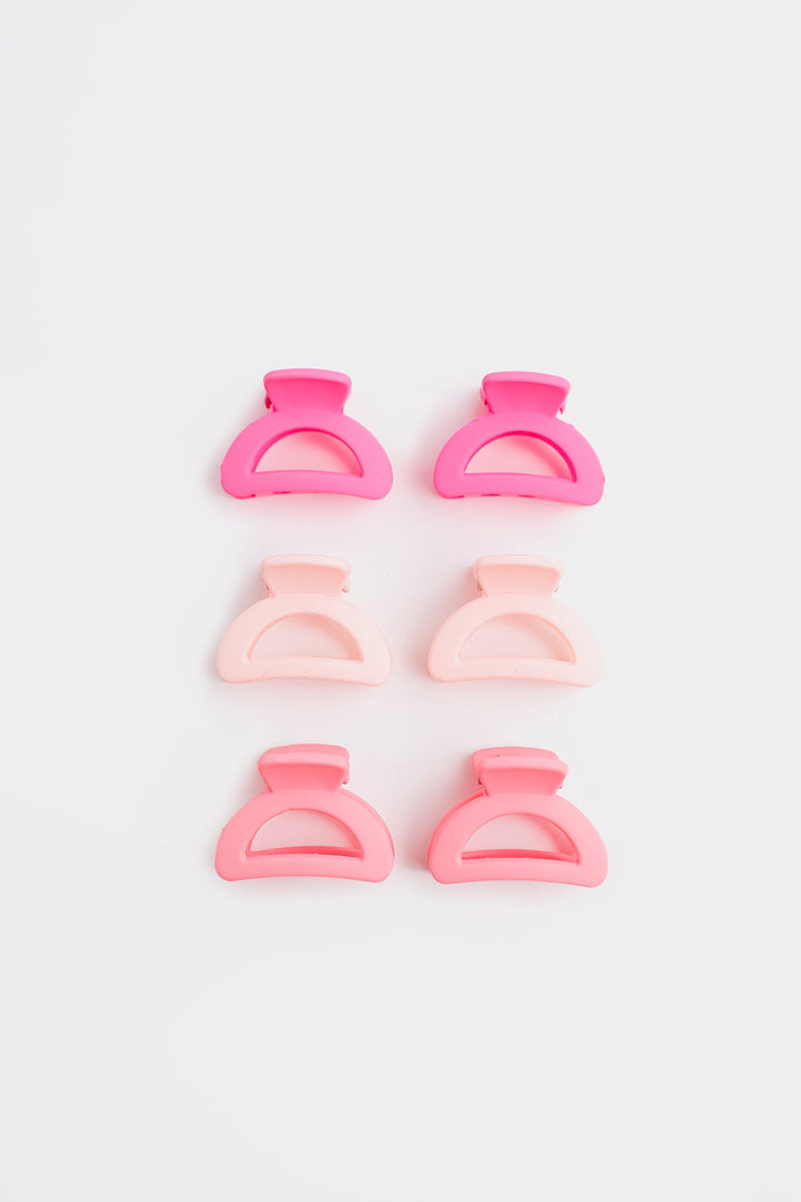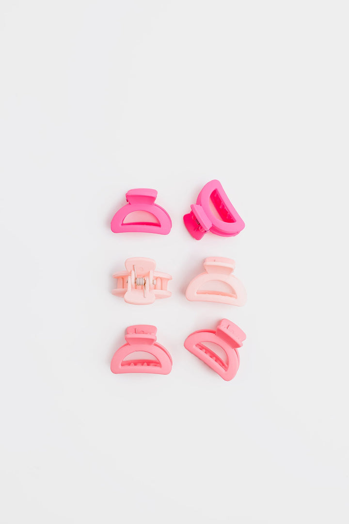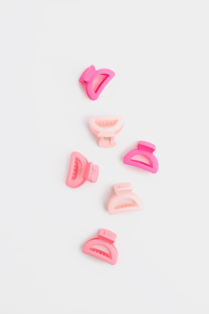 Infuse a touch of delicate charm into any hairstyle with this enchanting set of six mini claw clips, designed in beautiful shades of pink! This collection features two clips in a vibrant fuchsia, two in a soft, dreamy blush pink, and two in a sweet, light pastel pink, creating a lovely ombre effect. Perfect for securing small sections of hair, adding a pop of color to braids, or creating effortless half-up styles, these compact yet sturdy clips offer a reliable grip with a touch of playful sophistication. Ideal for everyday wear, special occasions, or simply adding a sweet accent, these ombre pink mini claws are a delightful essential for any accessory collection.