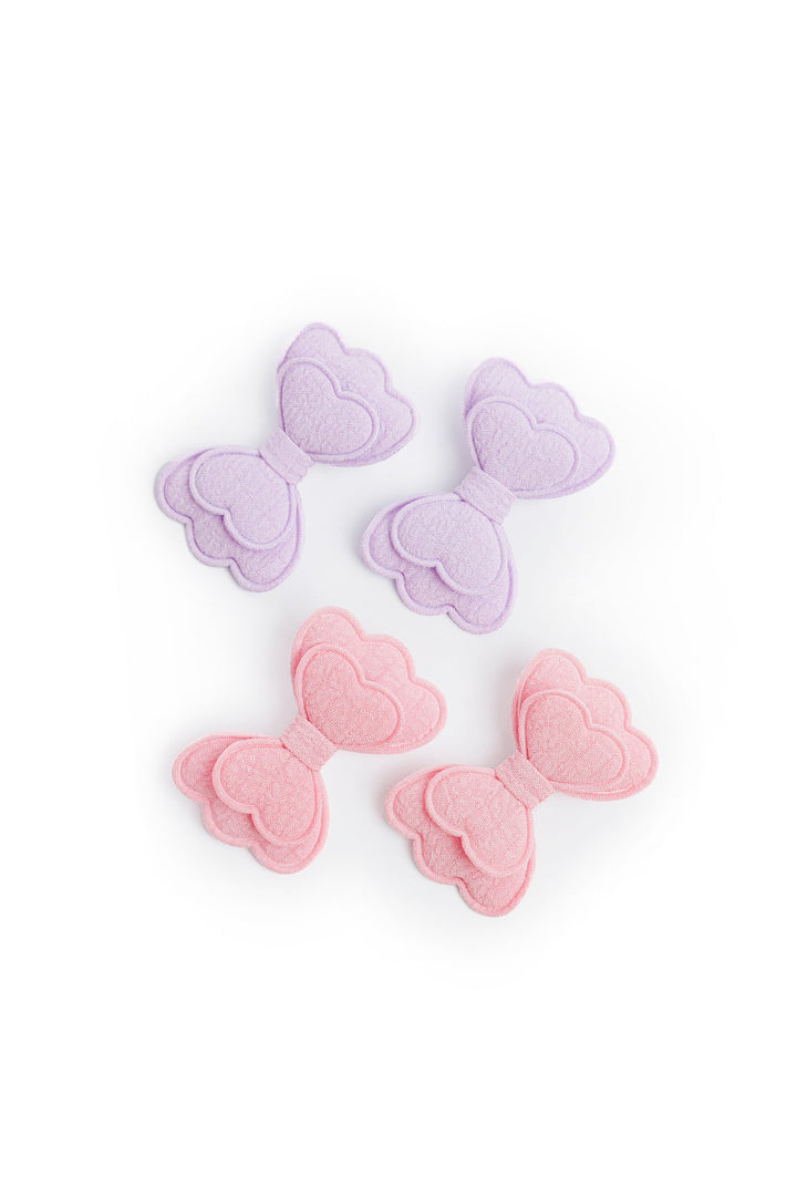 Enhance your kid's hairstyle with our lilac and pink fabric bow pins. Made from soft fabric, these bow pins add a touch of elegance and cuteness. They are perfect for everyday wear or special occasions. Upgrade your kids' hair accessories collection with our versatile and stylish bow pins.
