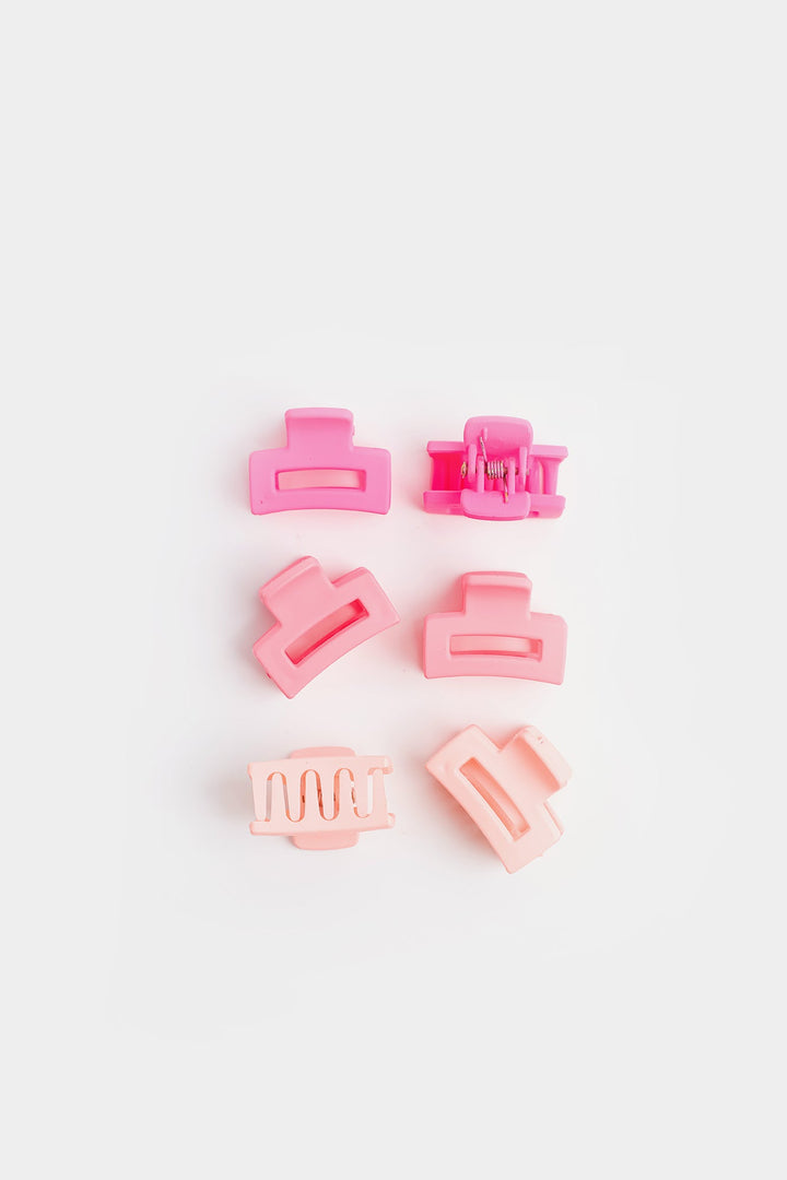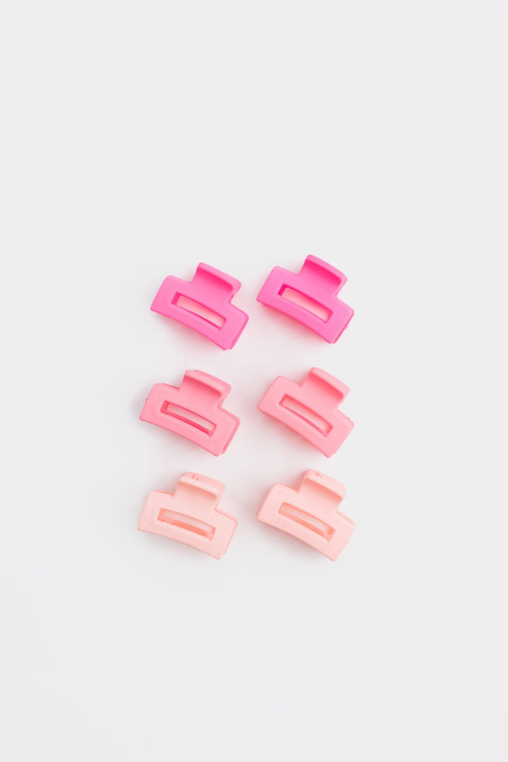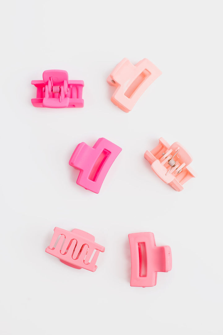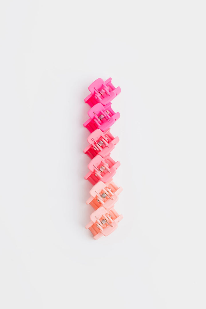 Infuse a touch of delicate charm into any hairstyle with this enchanting set of six mini claw clips, designed in beautiful shades of pink! This collection features two clips in a vibrant fuchsia, two in a soft, dreamy blush pink, and two in a sweet, light pastel pink, creating a lovely ombre effect. Perfect for securing small sections of hair, adding a pop of color to braids, or creating effortless half-up styles, these compact yet sturdy clips offer a reliable grip with a touch of playful sophistication. Ideal for everyday wear, special occasions, or simply adding a sweet accent, these ombre pink mini claws are a delightful essential for any accessory collection.