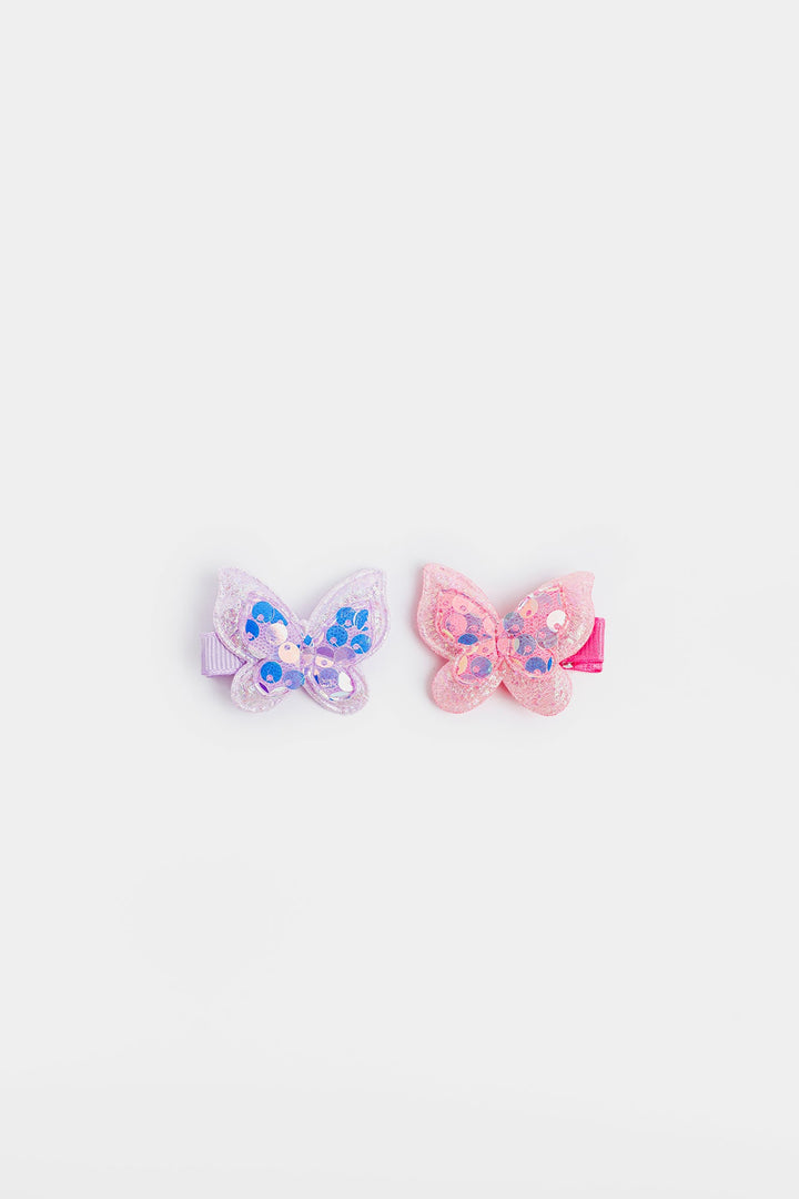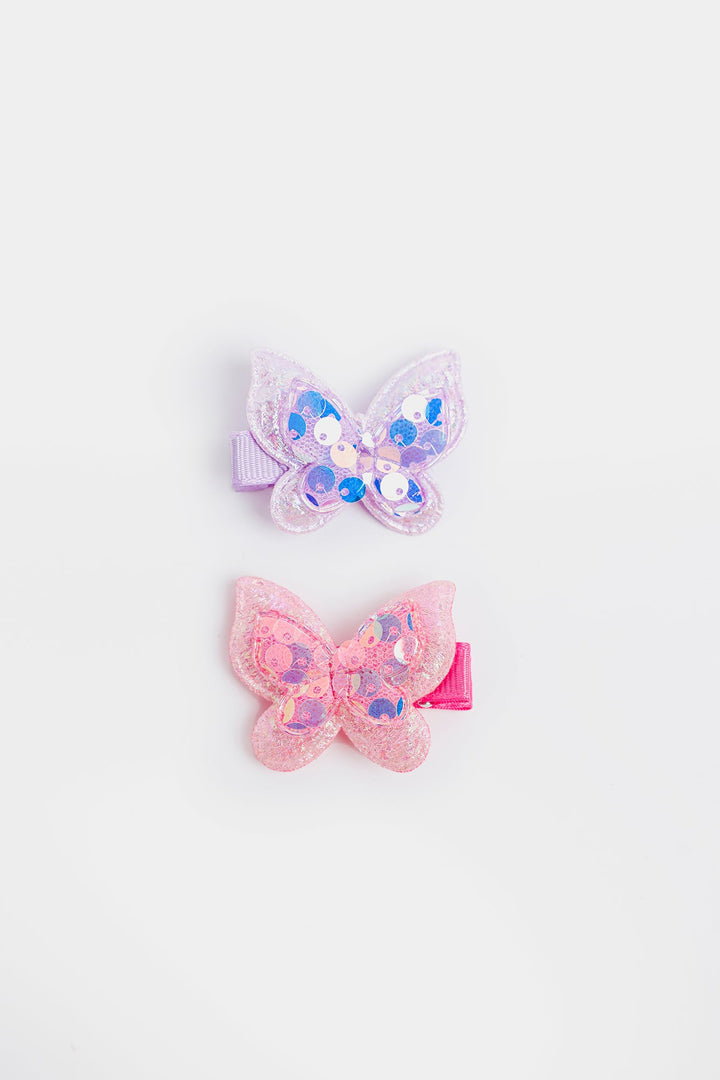 Capture the essence of ethereal beauty with these enchanting shaker butterfly clips! Each iridescent butterfly is filled with sparkling sequins and glitter, creating a magical flutter of color with every move. This 4-pack includes delightful pink and purple pairs.