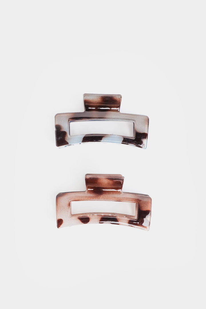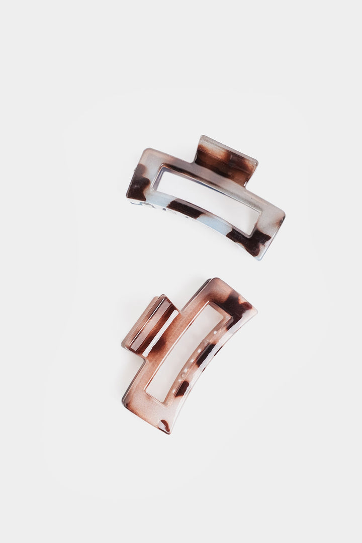 Add a touch of timeless elegance to your accessory collection with these hair clips. Featuring a classic pattern, in swirling shades of earthy browns, offering a polished and stylish accent for a look. Their rectangular design provides a secure and comfortable hold for various hair types and styles. Designed for effortless elegance, these clips blend vintage charm with modern functionality, making them a versatile staple for any accessory collection.