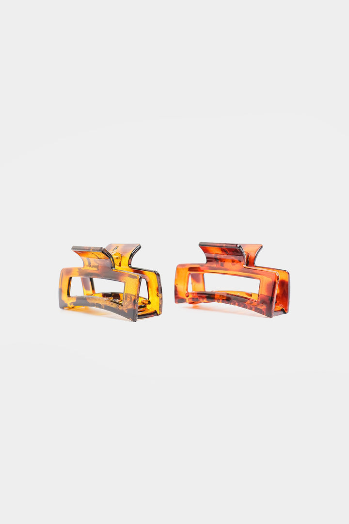 Level up your hair accessory game with these two orange-hued translucent hair clips. A vibrant yet delicate addition to your accessory collection. Bathed in a warm, sun-kissed orange glow, these clips shimmer with a translucent finish that catches the light, adding a subtle, luminous touch to any hairstyle.