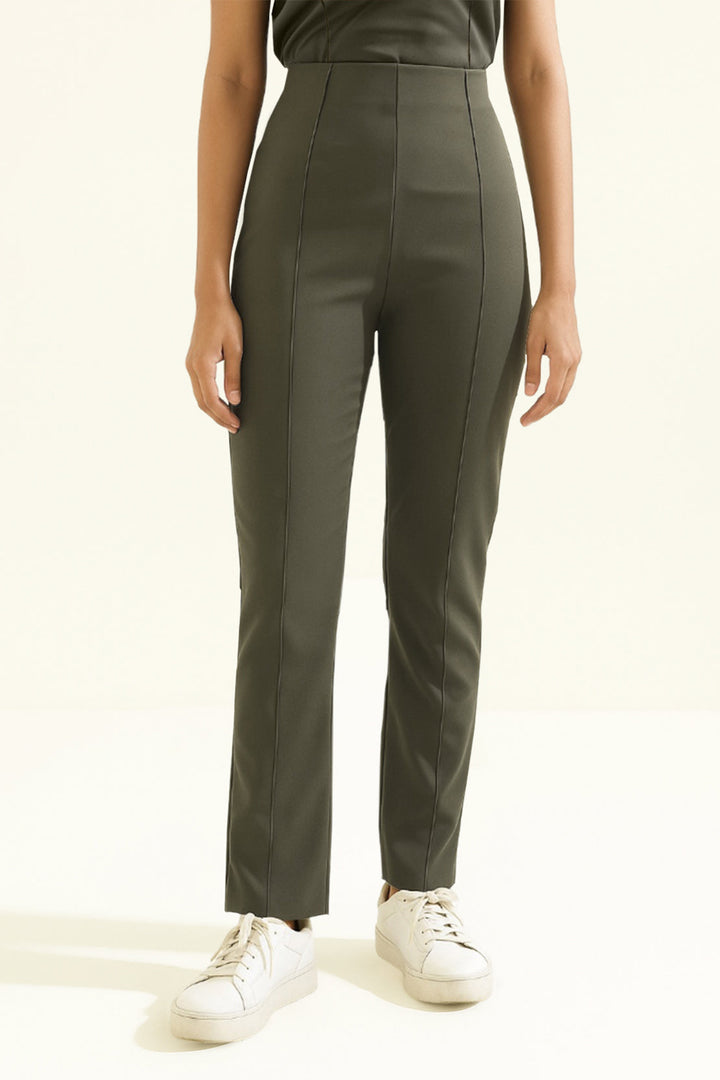 The “High‑Waist Straight‑Cut – Olive Green Trousers” By SAYA Combine Elevated Simplicity With A Structured, Flattering Fit. Crafted From Premium Scuba Fabric, These Trousers Offer A Smooth, Stretch‑Infused Texture That Enhances Comfort While Maintaining Shape And Polish. The High Waist Accentuates The Natural Silhouette, While The Straight‑Cut Leg Adds Clean, Elongating Lines. The Deep “Olive Green” Shade Lends Earthy Sophistication, Making It Ideal For Both Casual And Semi‑Formal Wear. Versatile, Tailored, And Effortlessly Elegant—This Piece Completes Any Modern Wardrobe.