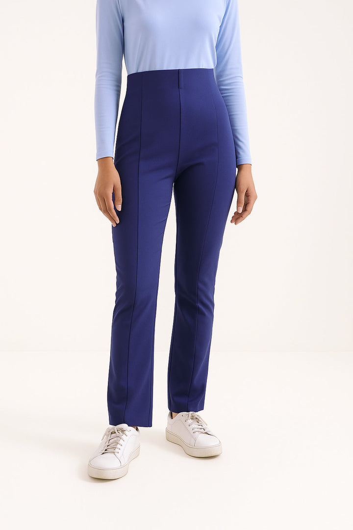 Elevate Everyday Elegance With SAYA’s High-Waist Straight-Cut – Navy Blue Trousers, Designed To Flatter With A Structured Fit And Classic Silhouette. Tailored In A Deep Navy Blue Shade, This Versatile Pair Adds Refinement To Office Looks, Semi-Formal Wear, And Effortless Daily Styling.