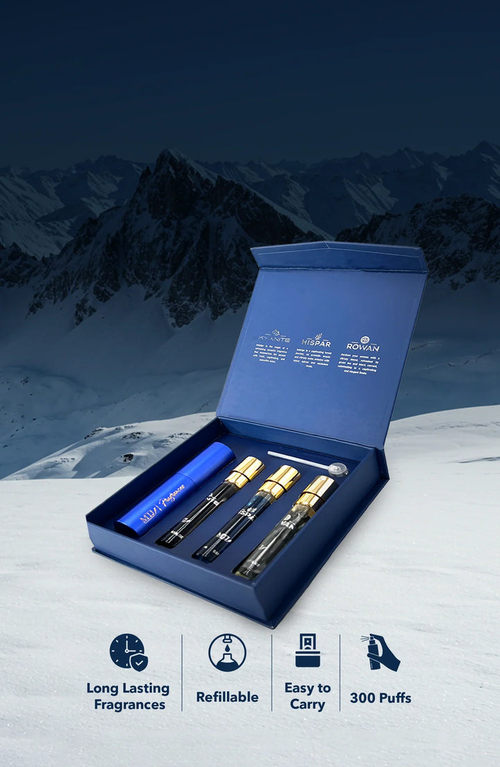The NEW HIMALAYAN INSPIRATION embark on an aromatic adventure through a trio of captivating fragrances.
