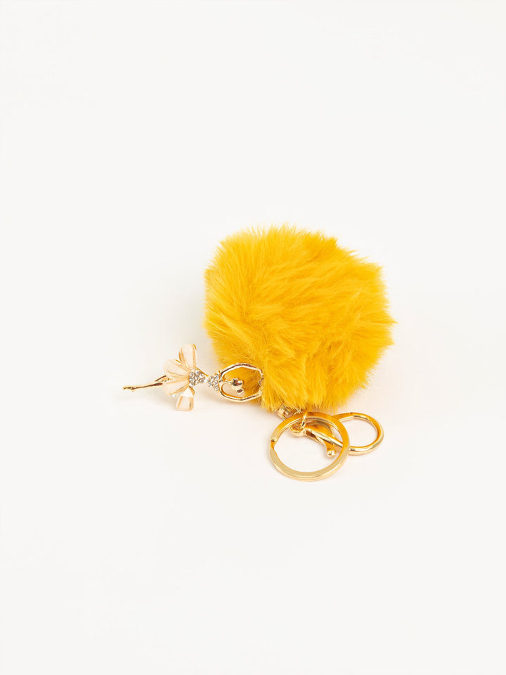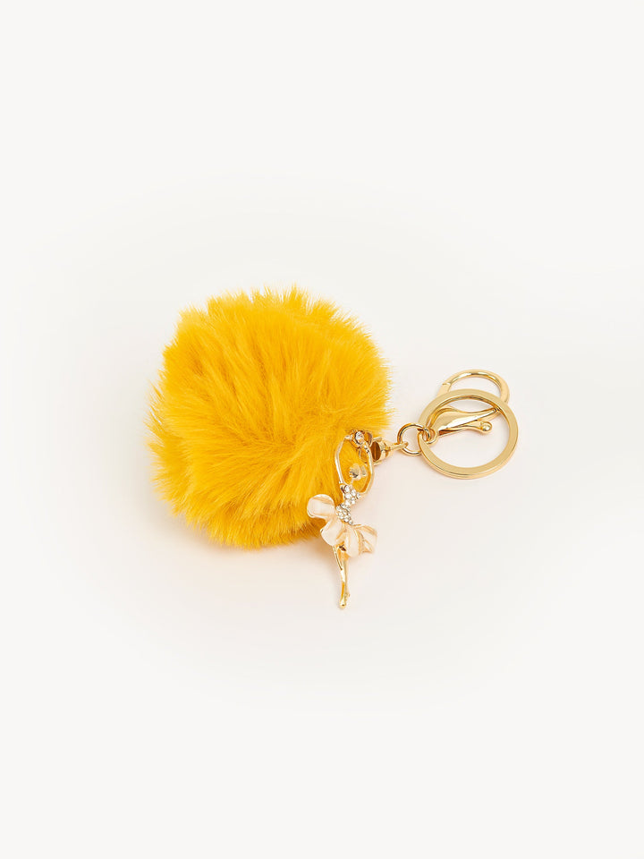 - Fur pompom and embellished ballerina figurine charm on the keychain