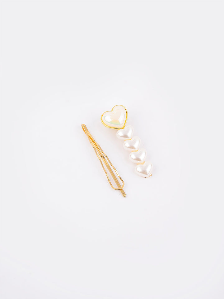 - One heart shaped pearl emballished hair clip