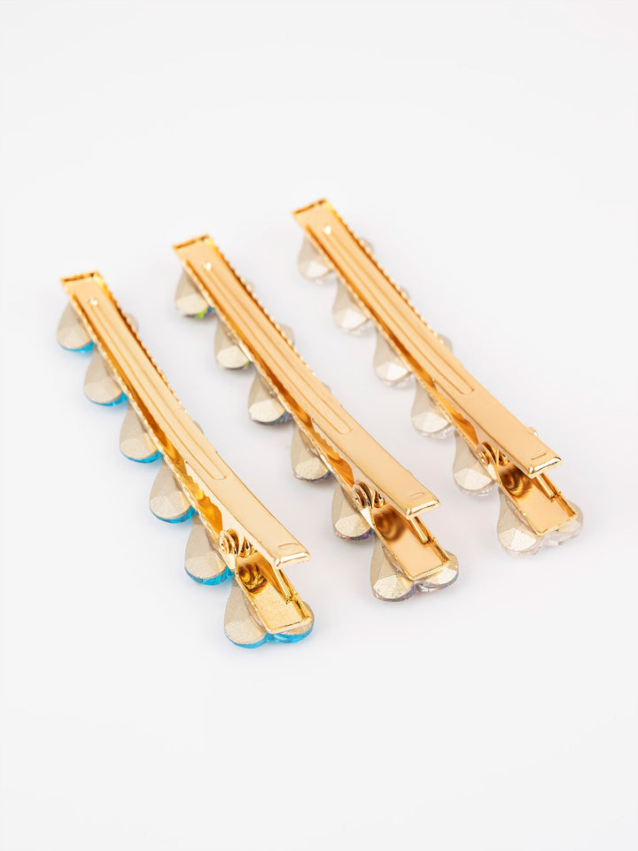 - Three multi color beaded hair clips
