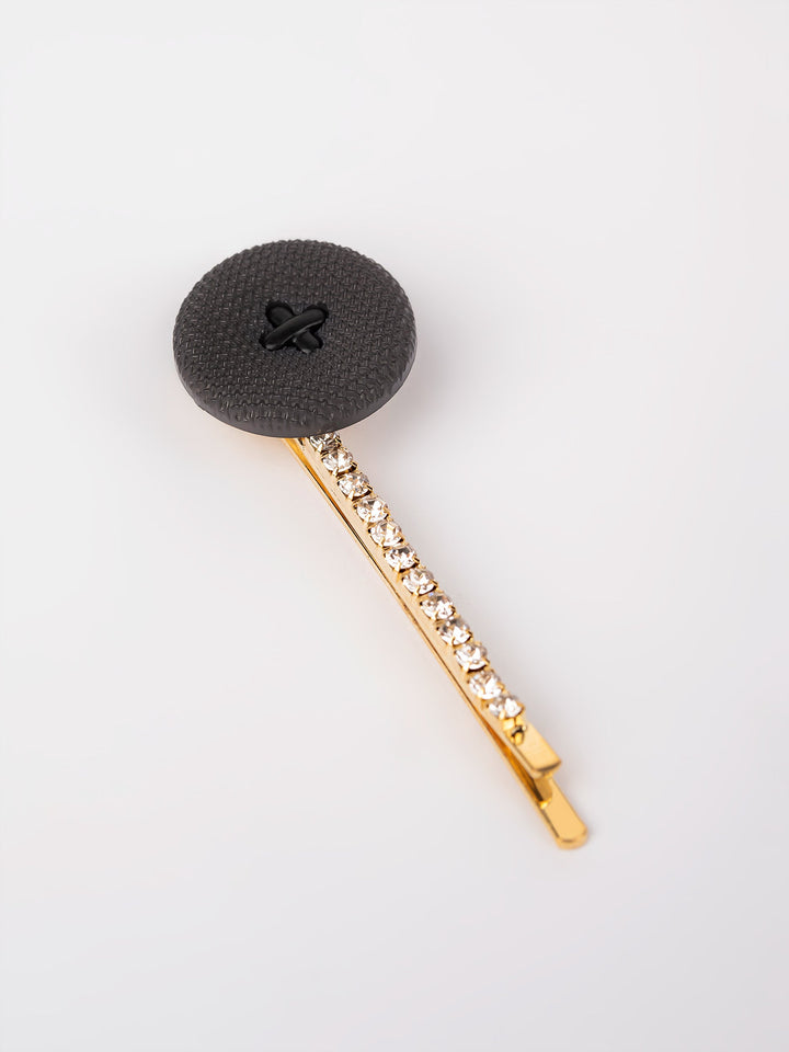 - One rhinestone embellished hairpin with a button