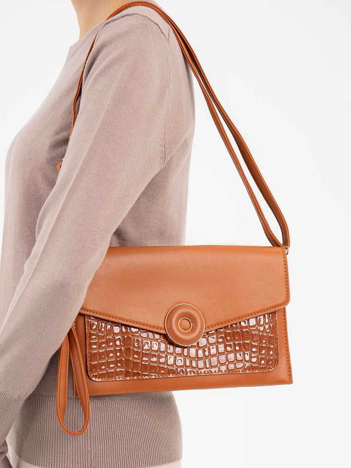 - Snake textured clutch with brooch