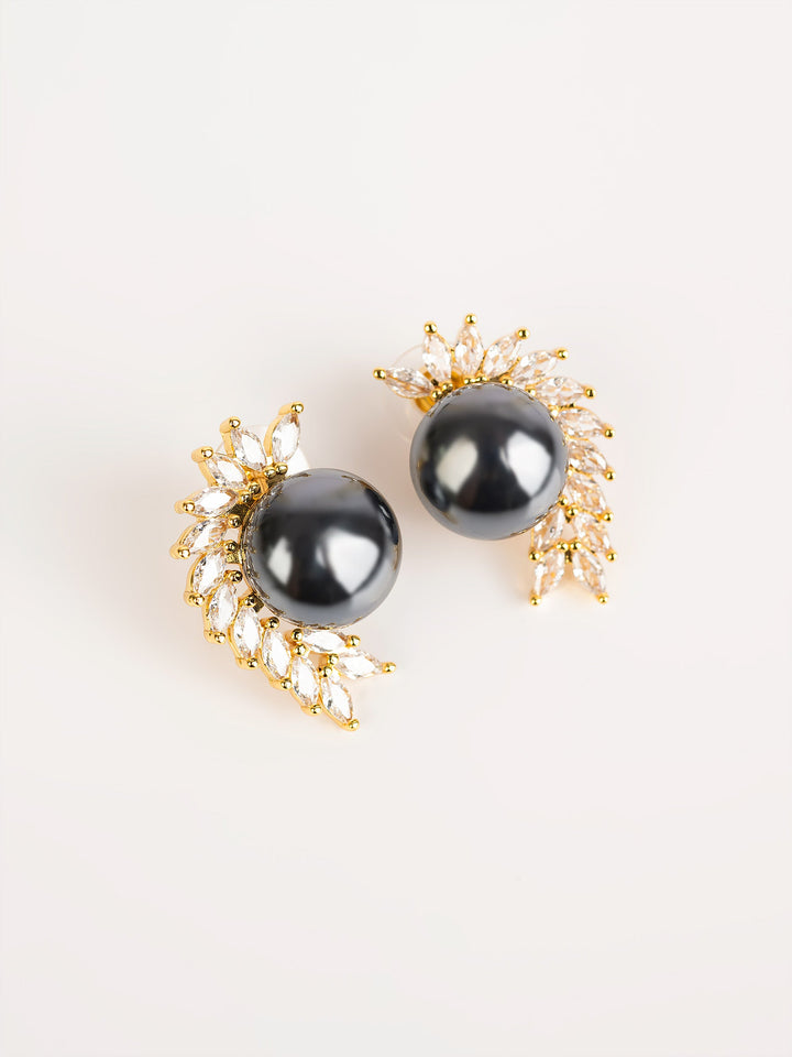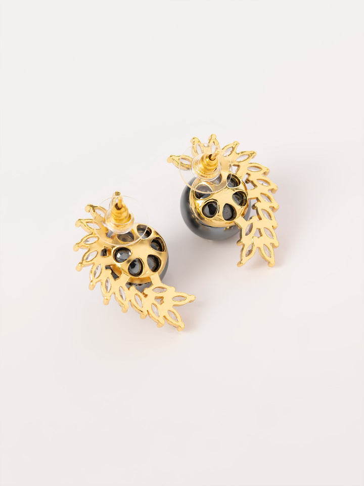 - Curvy stone embellished earrings with a pearl