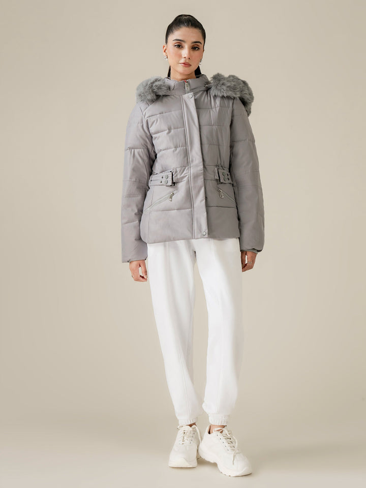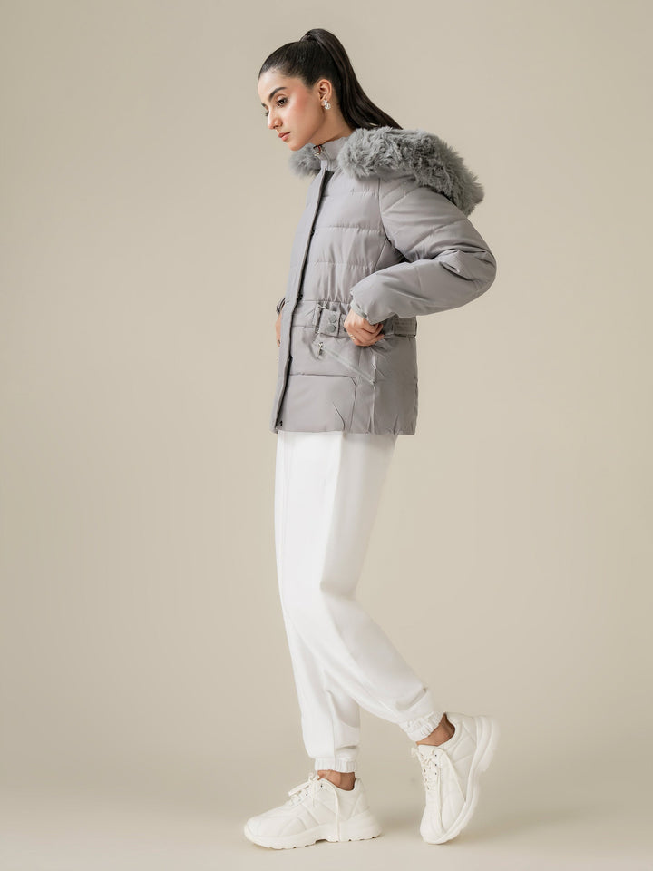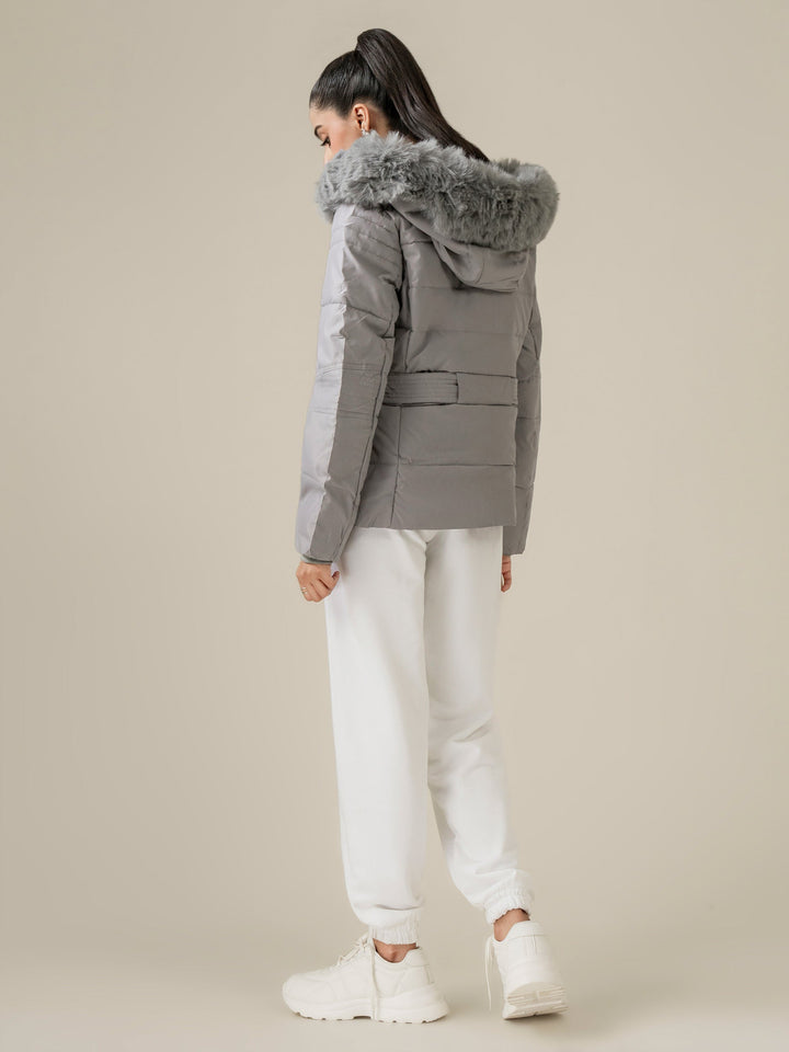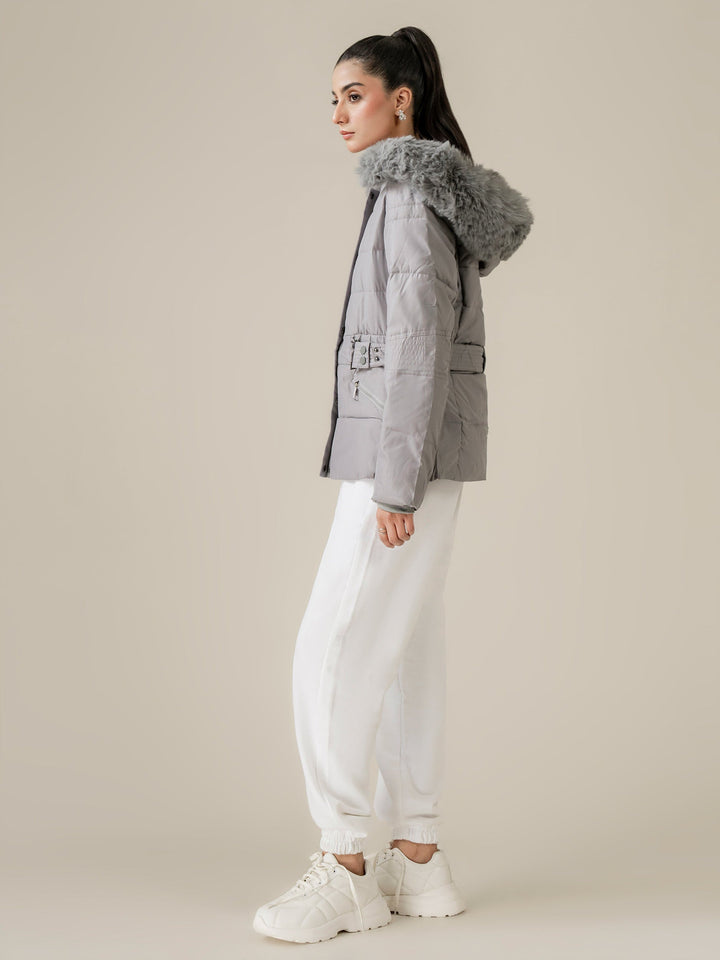 - Detachable hood with fur