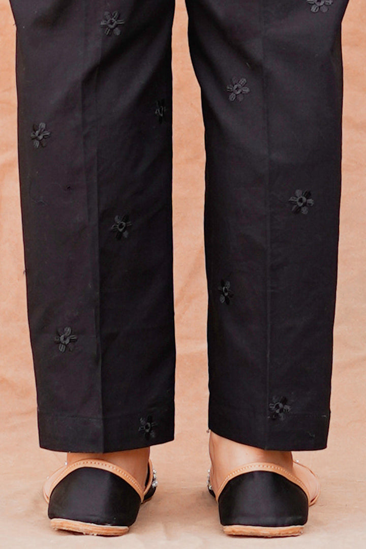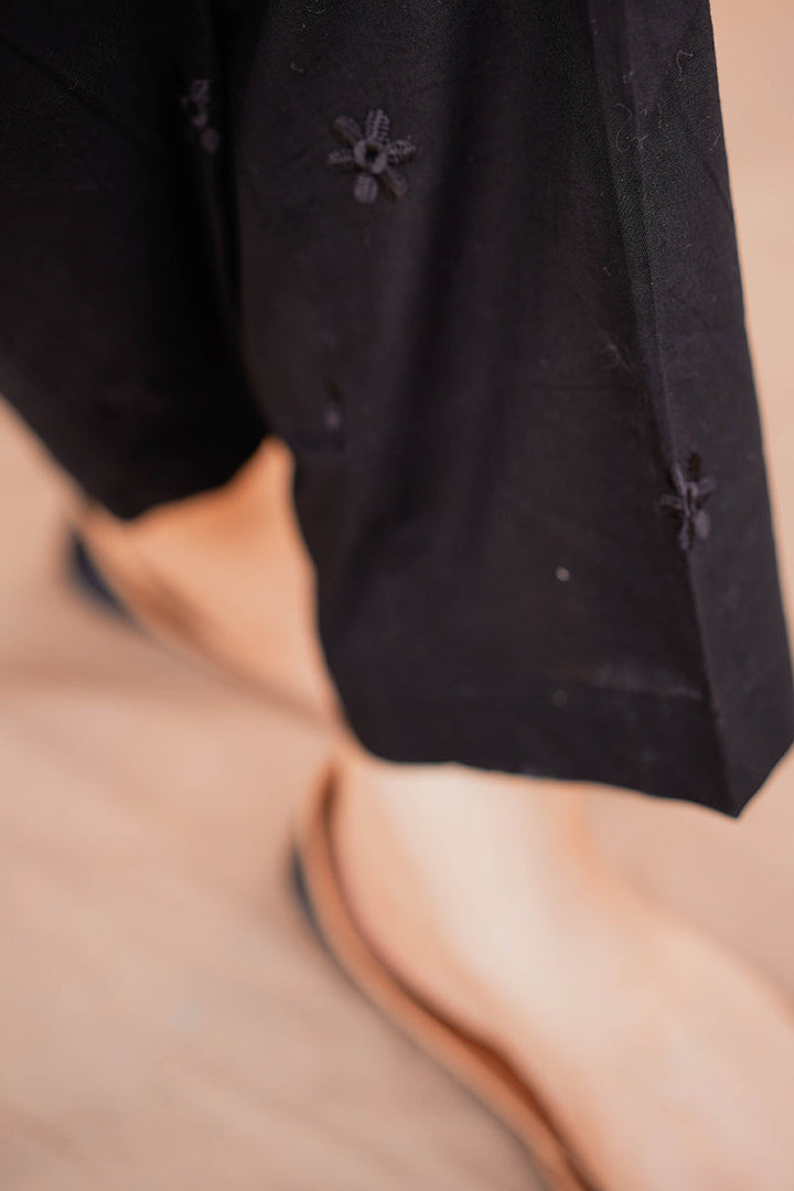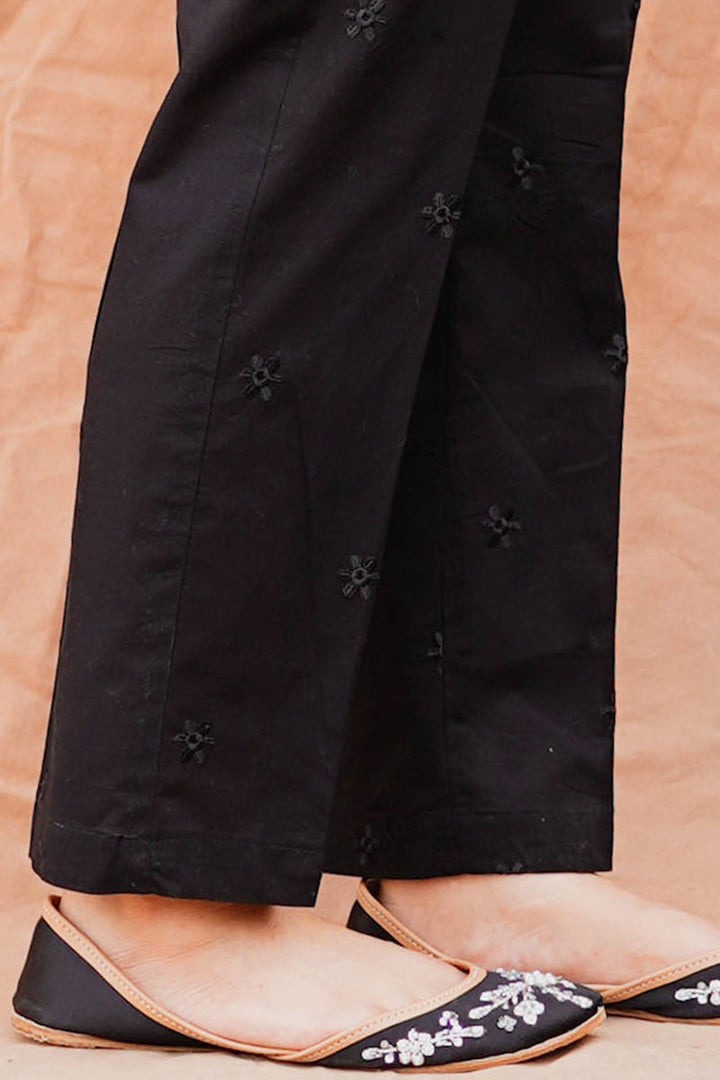 STRAIGHT FITTED EMBROIDERED CAMBRIC PANTS