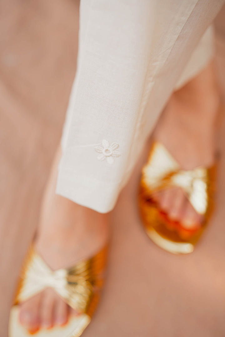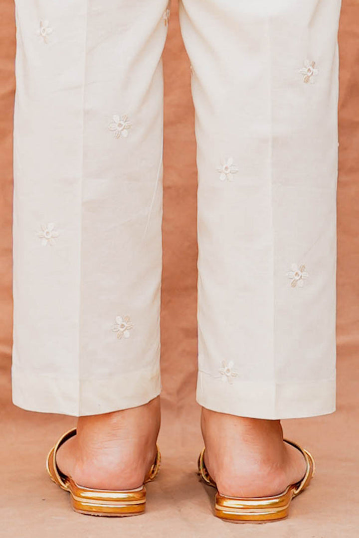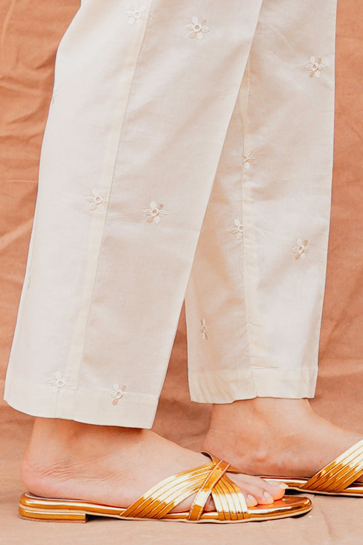 STRAIGHT FITTED EMBROIDERED CAMBRIC PANTS