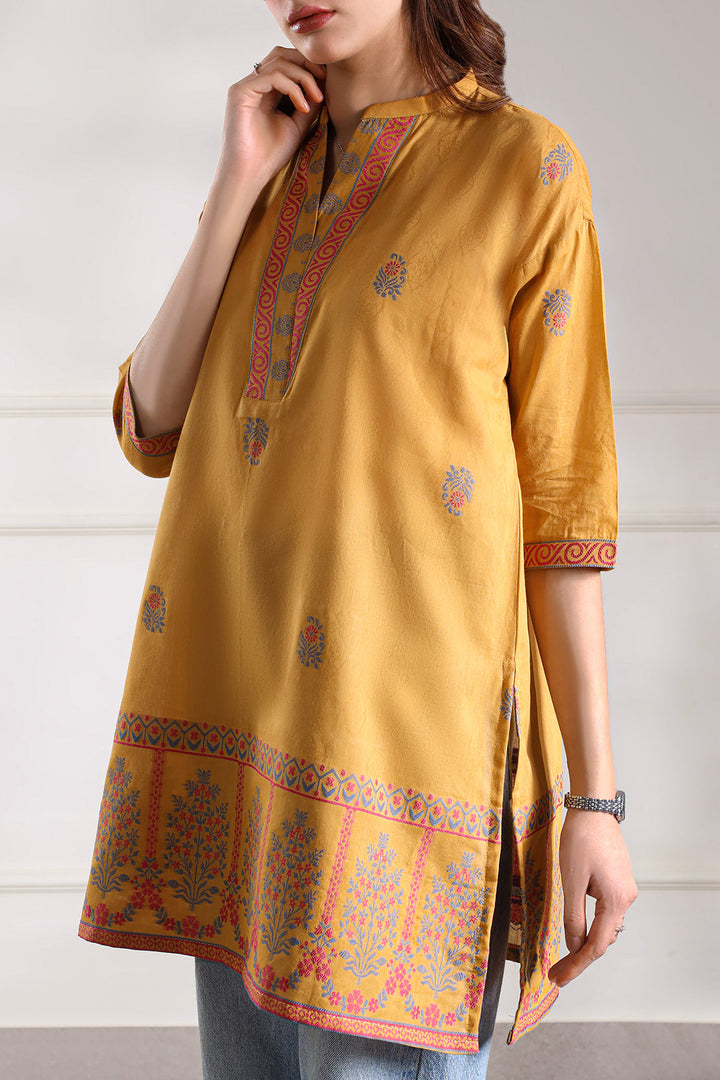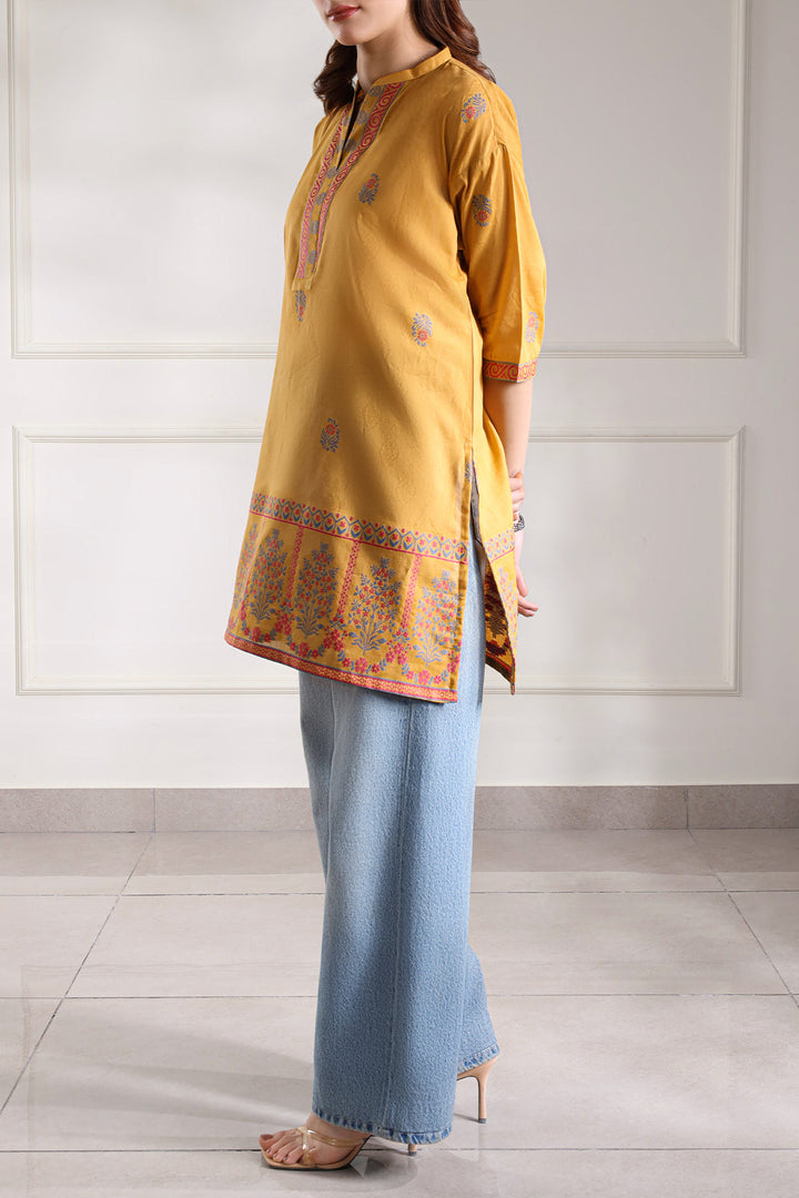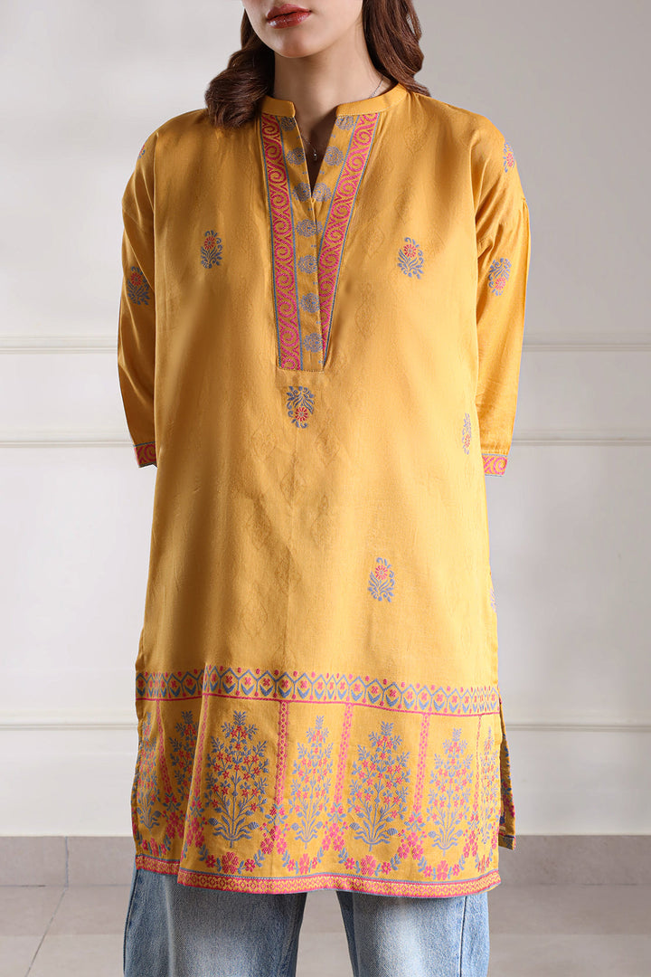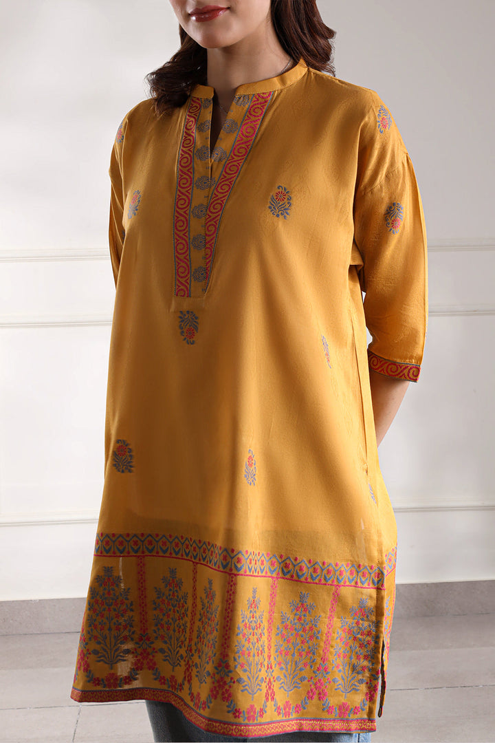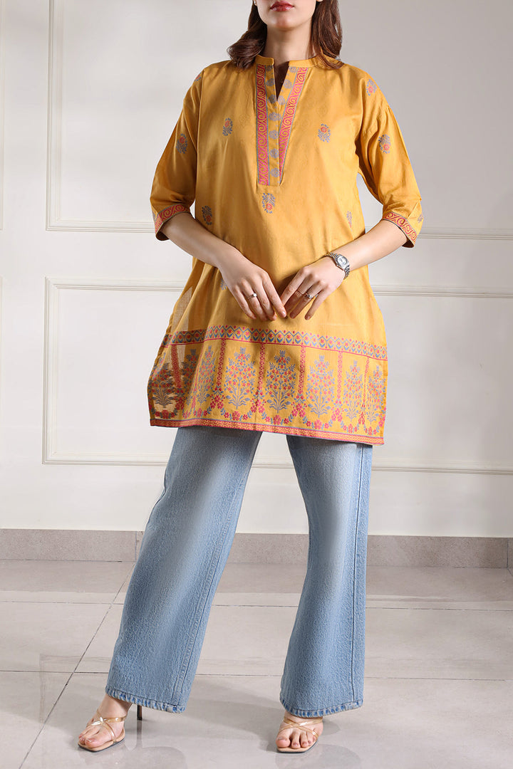 Saya's Jacquard Cotton Stitched Shirt in Mustard offers a harmonious blend of elegance and comfort, making it an ideal choice for both casual and semi-formal occasions. Crafted from premium cotton jacquard fabric, this ready-to-wear shirt ensures breathable comfort and a polished look throughout the day.