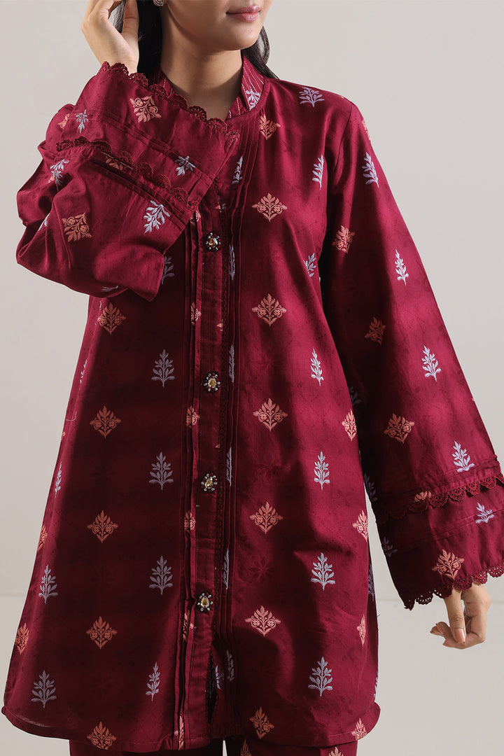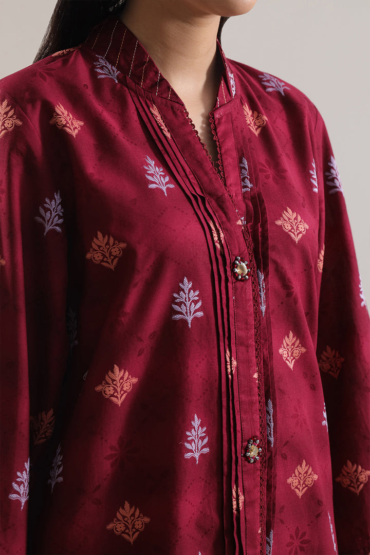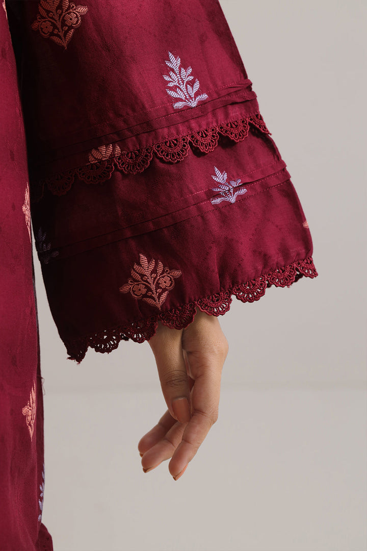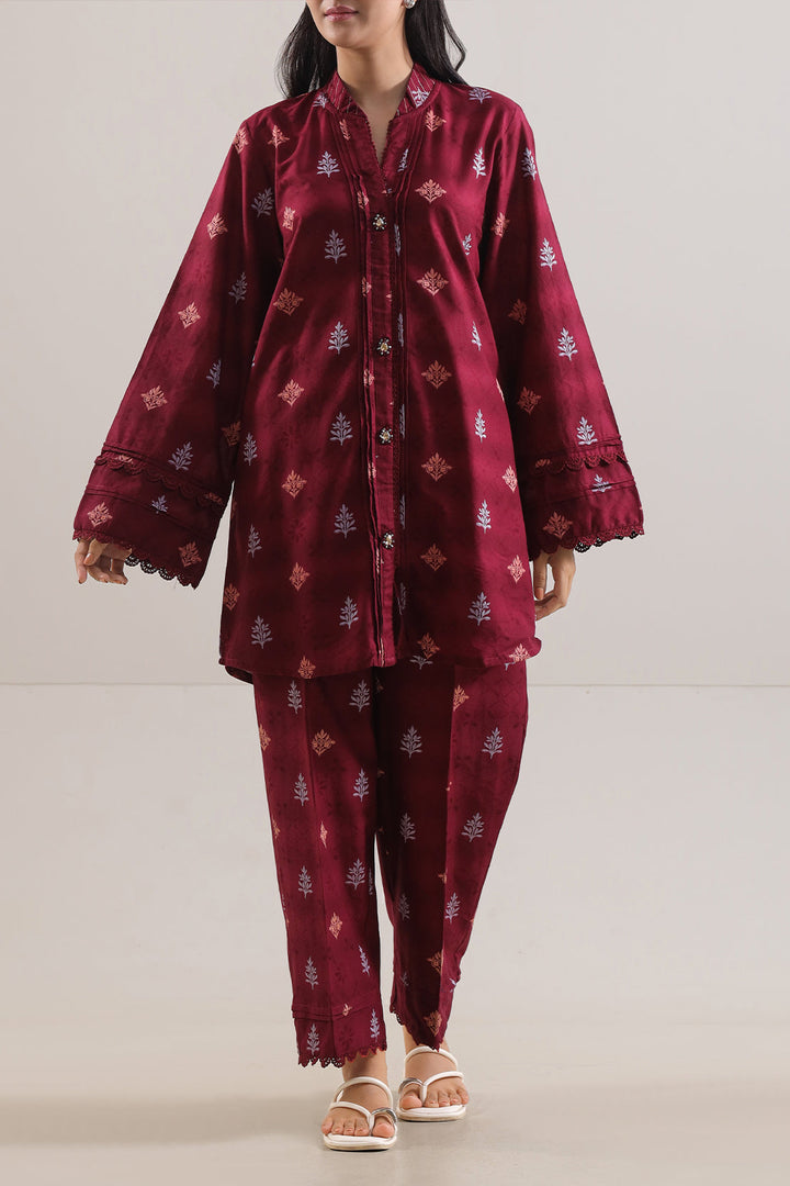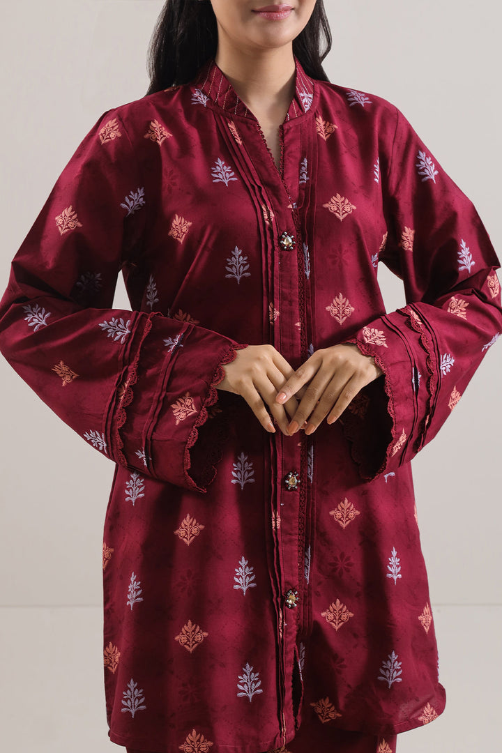 Elevate Your Everyday Wardrobe With This Refined Jacquard Cotton Stitched Shirt By SAYA, Crafted In A Rich Maroon Shade. Made From Premium Cotton Jacquard Fabric With Subtle Woven Patterns, It Marries Comfort With Visual Depth. Tailored To A Ready-To-Wear Standard, It Offers A Polished Silhouette Ideal For Daywear Or Casual Evening Affairs—A True Blend Of Texture, Durability, And Understated Sophistication.