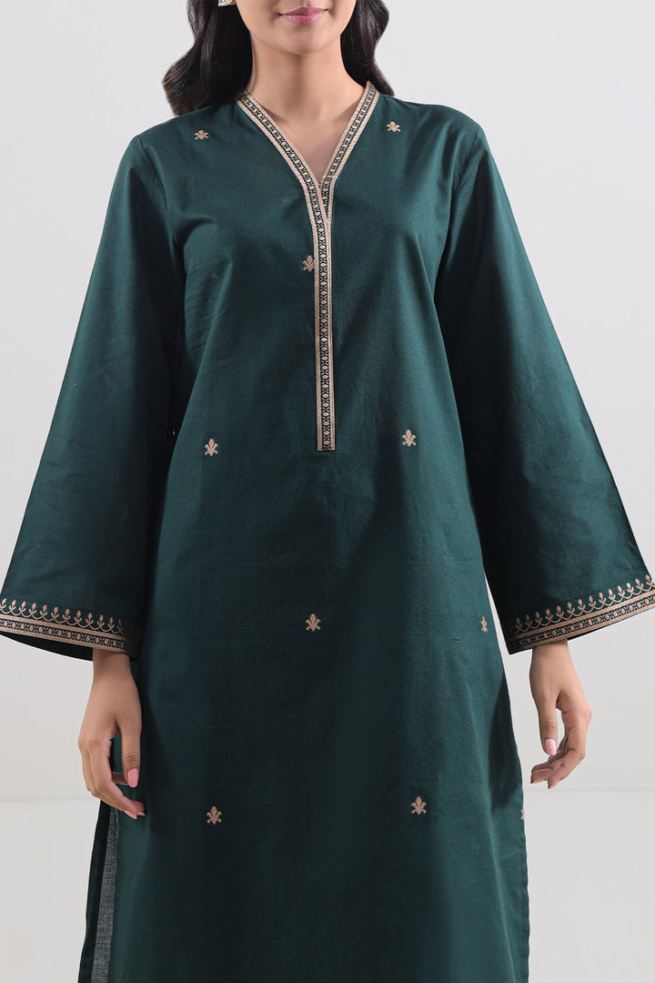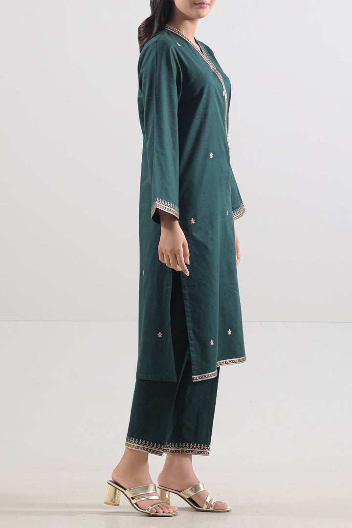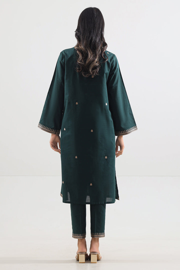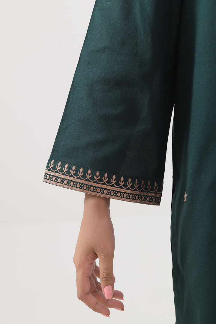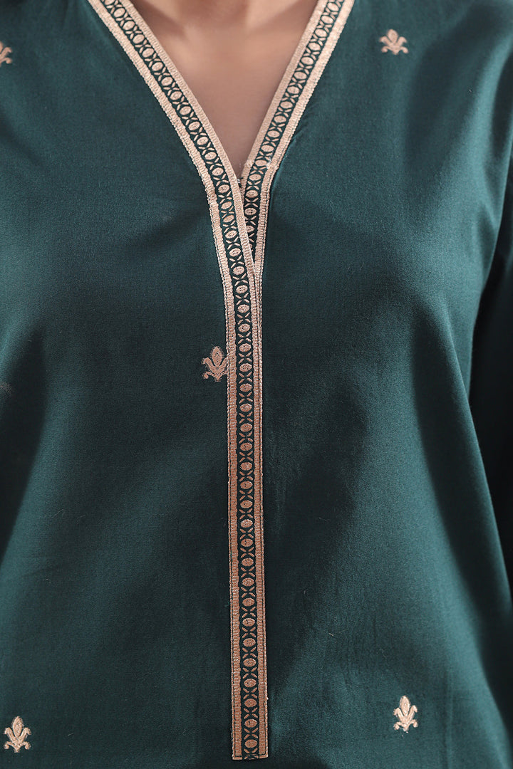 Jacquard Cotton Stitched Shirt By SAYA, Crafted From Premium Jacquard Cotton With Rich Texture And Subtle Weave Patterns That Elevate A Basic Silhouette. This Ready-To-Wear Piece In Deep Dark Green Offers Breathable Comfort And Polished Appeal, Perfect For Daywear Or Casual Evenings. The Shirt Features A Clean Cut, Neat Collar, And Precision Stitching Ensuring Durability Along With Style. A Timeless Single-Piece Staple That Adds Sophistication And Texture To Any Wardrobe.
