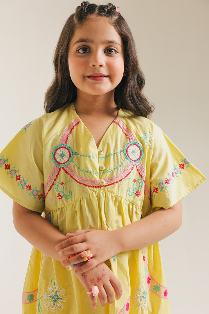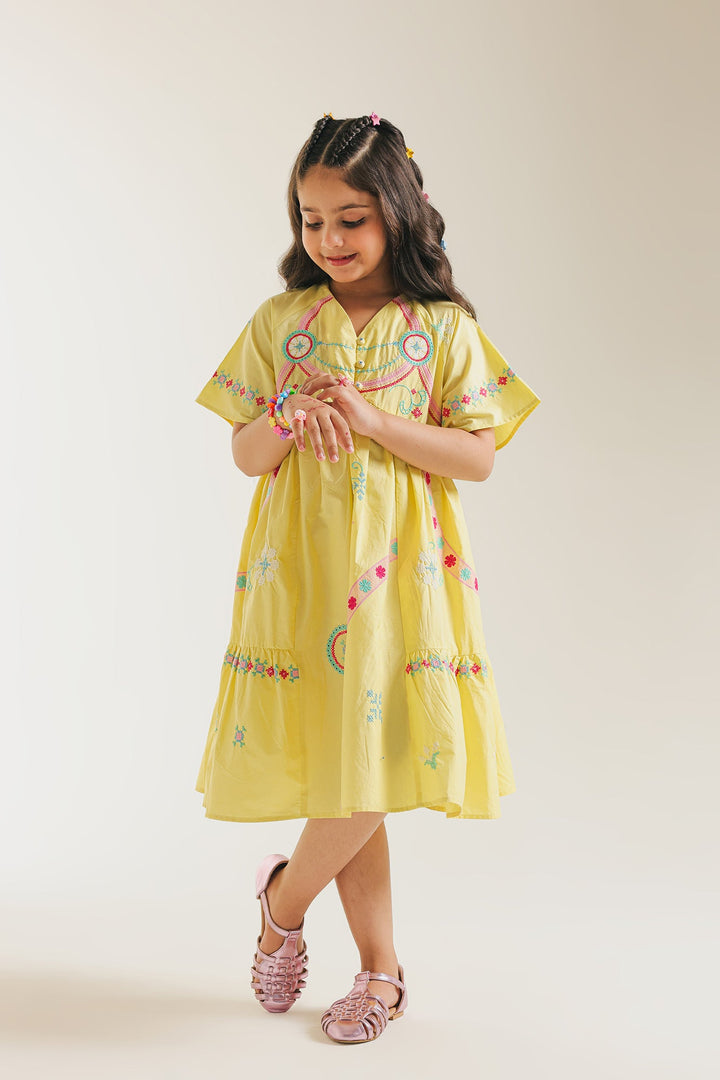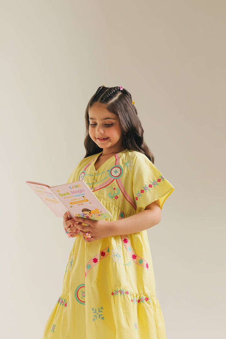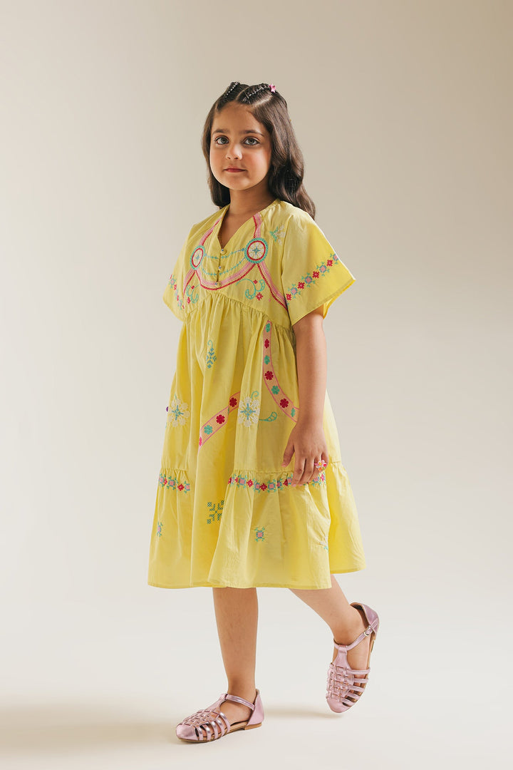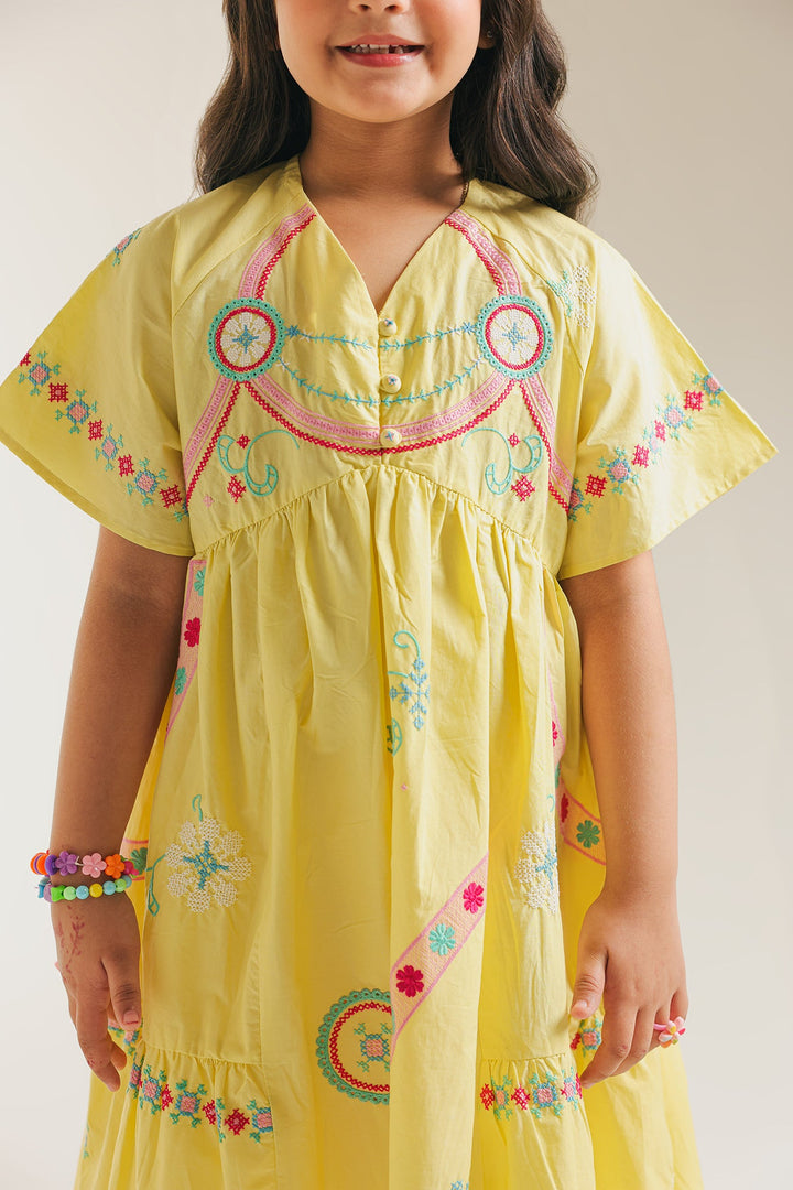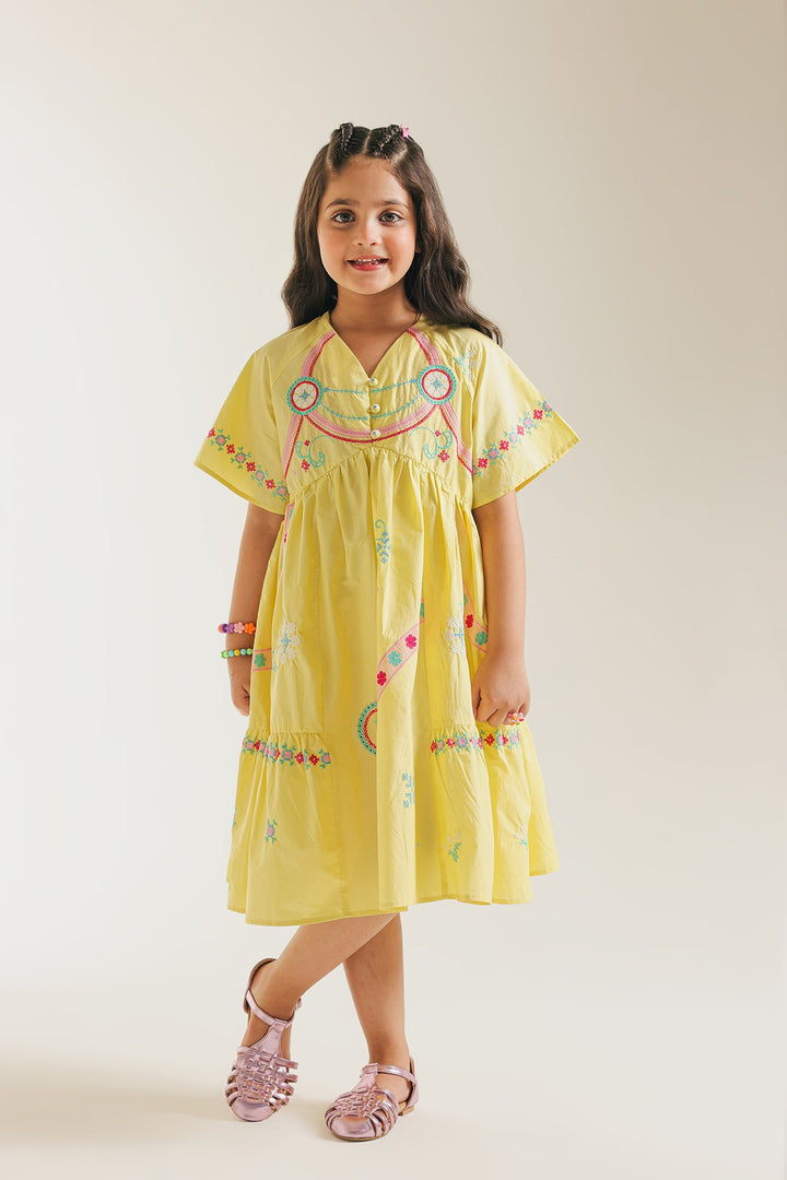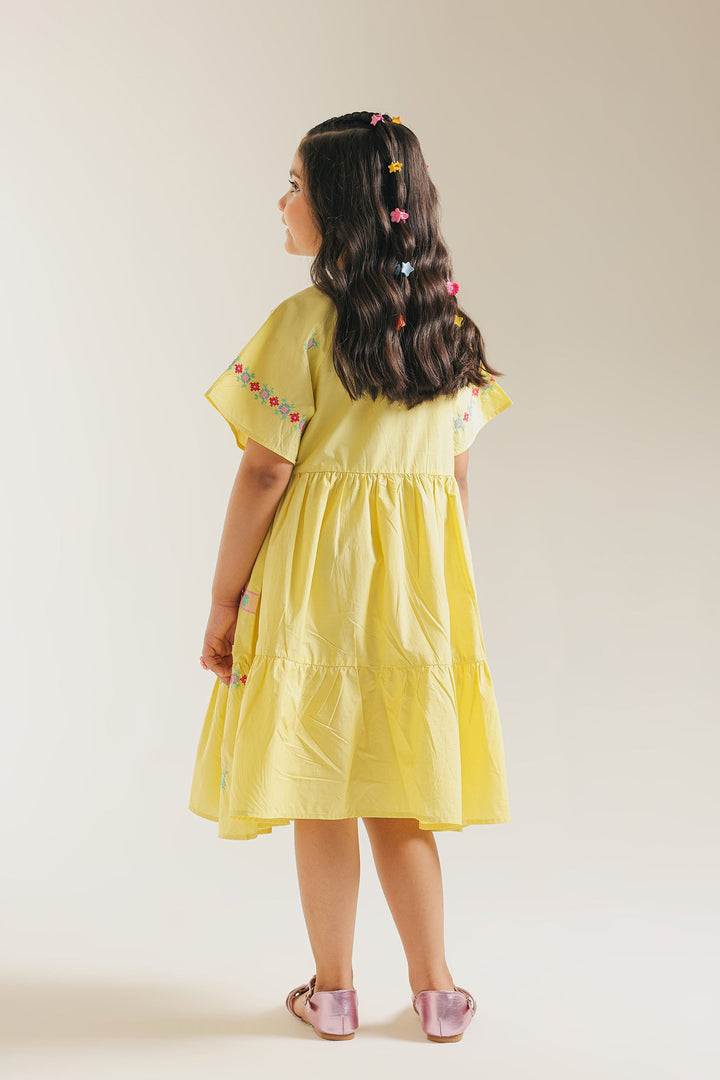 Let your little one twirl in delight with our enchanting Sunshine Serenade Dress. Crafted in a cheerful, radiant yellow, this charming tiered frock is brought to life with delicate, colorful embroidery that dances along the neckline and skirt. The breathable fabric and comfortable, relaxed fit ensure freedom of movement for endless adventures. This dress is a celebration of vibrant spirit and youthful charm, ready to add a burst of happiness to any occasion.