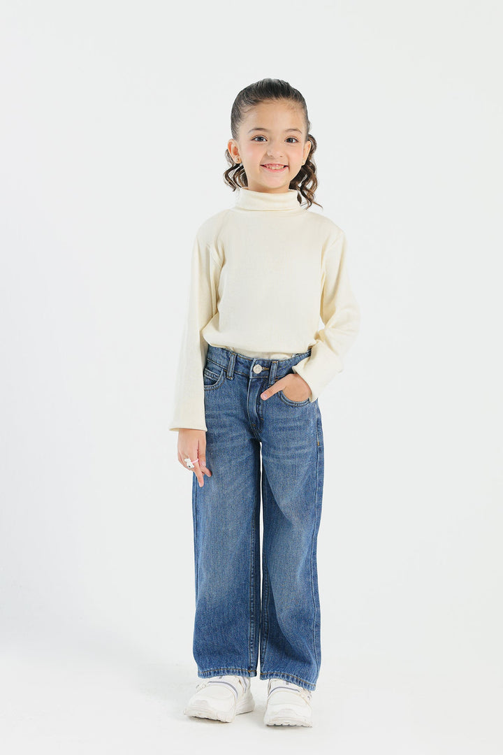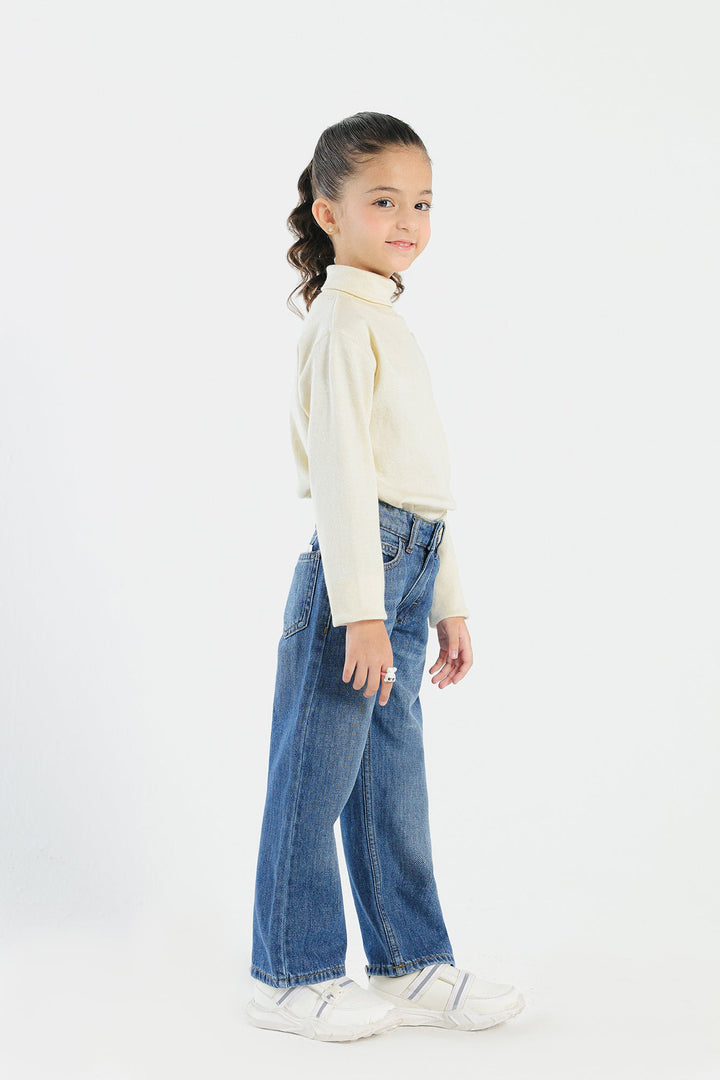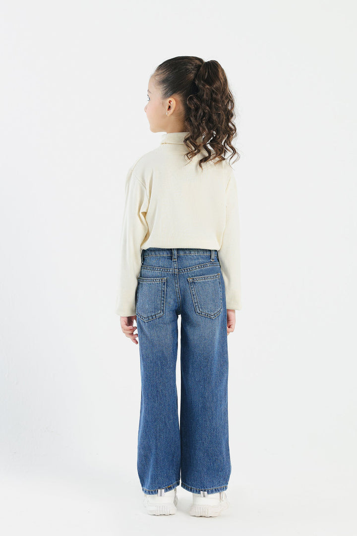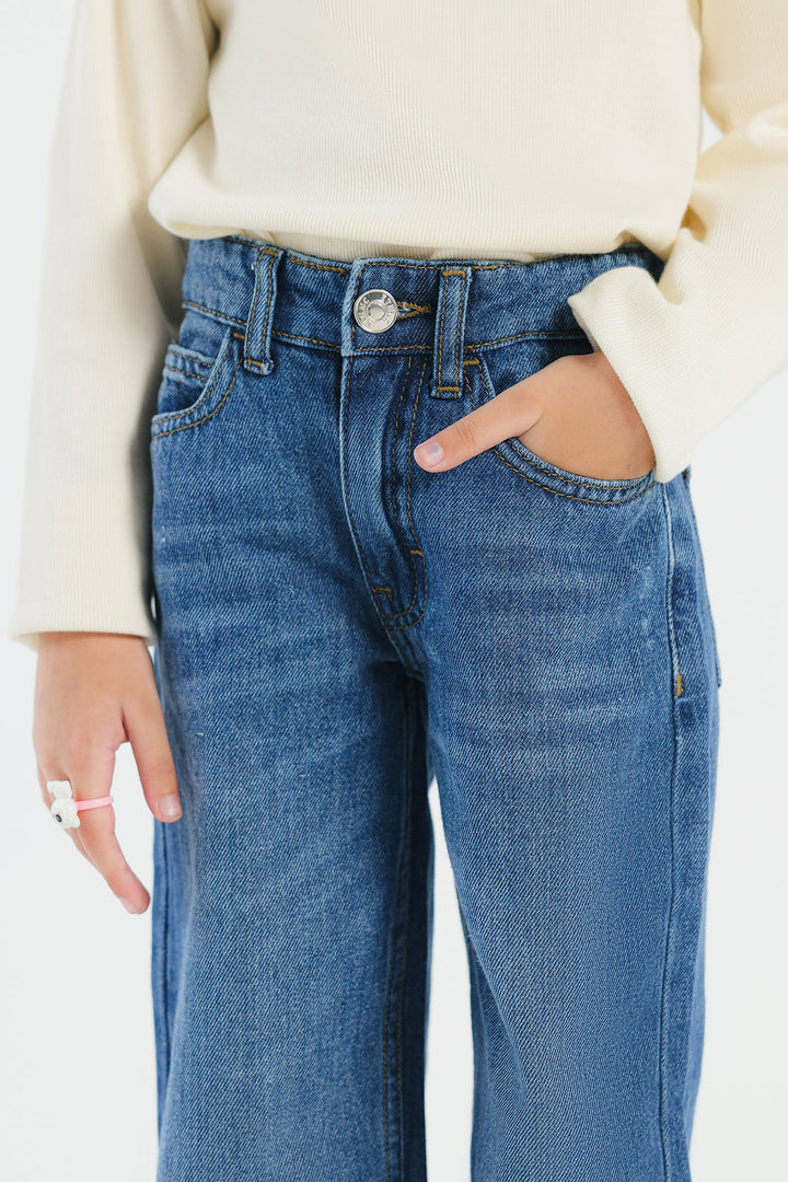 Look trendy this fun season in this fashionable denim blue jeans. Portraying an edgy design with contemporary silhouette, this statement jeans is a great addition to your girls' everyday wardrobe.