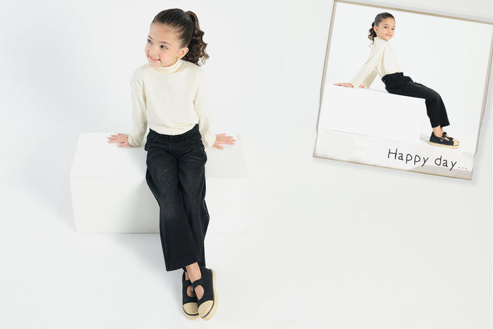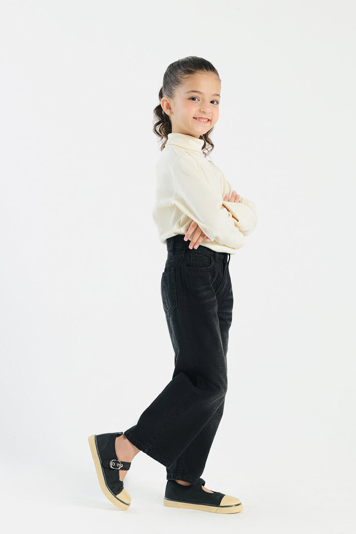 Look trendy this fun season in this fashionable denim jeans rendered in a deep black shade. Portraying an edgy design with contemporary silhouette, this statement jeans is a great addition to your girls' everyday wardrobe.