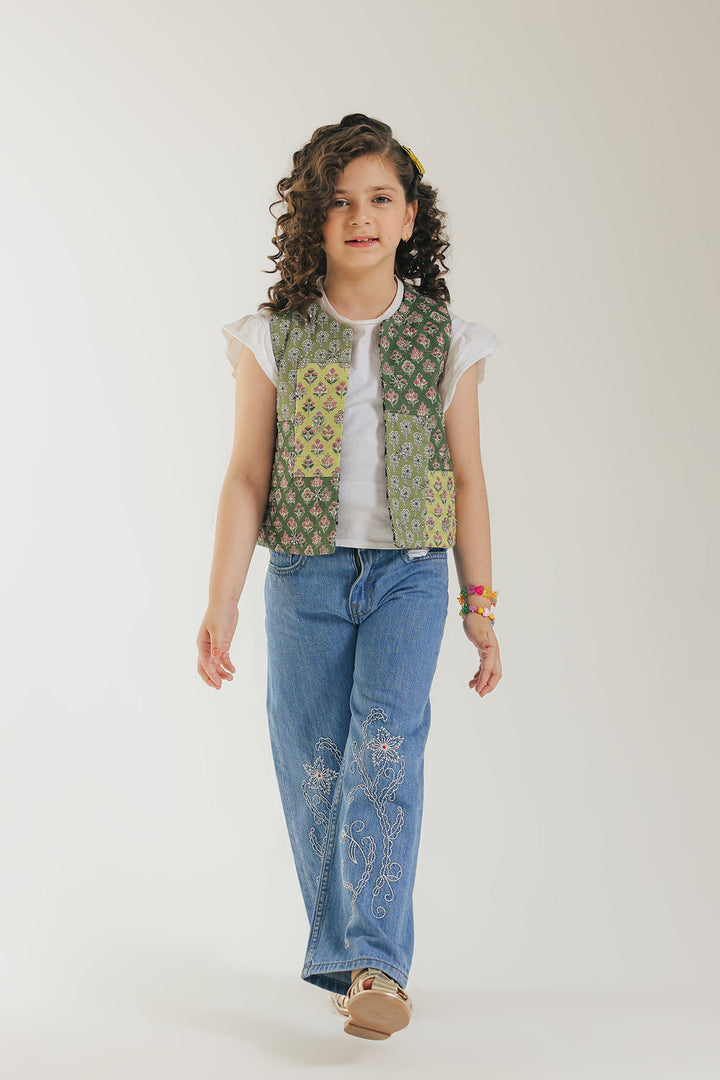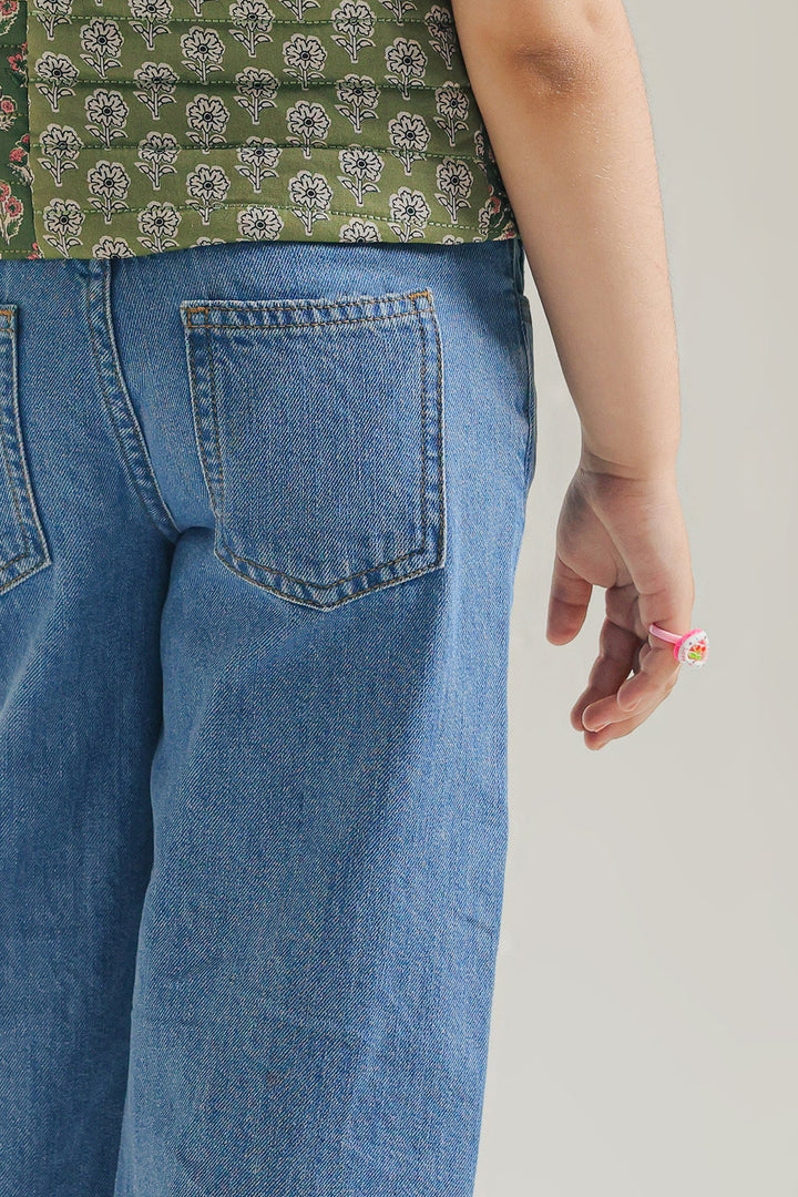 Look trendy this fun season in these fashionable denim blue jeans adorned with delicate white floral embroidery on the lower legs, adding a unique and stylish touch. These statement jeans with a contemporary silhouette will be a great addition to your girls' everyday wardrobe.