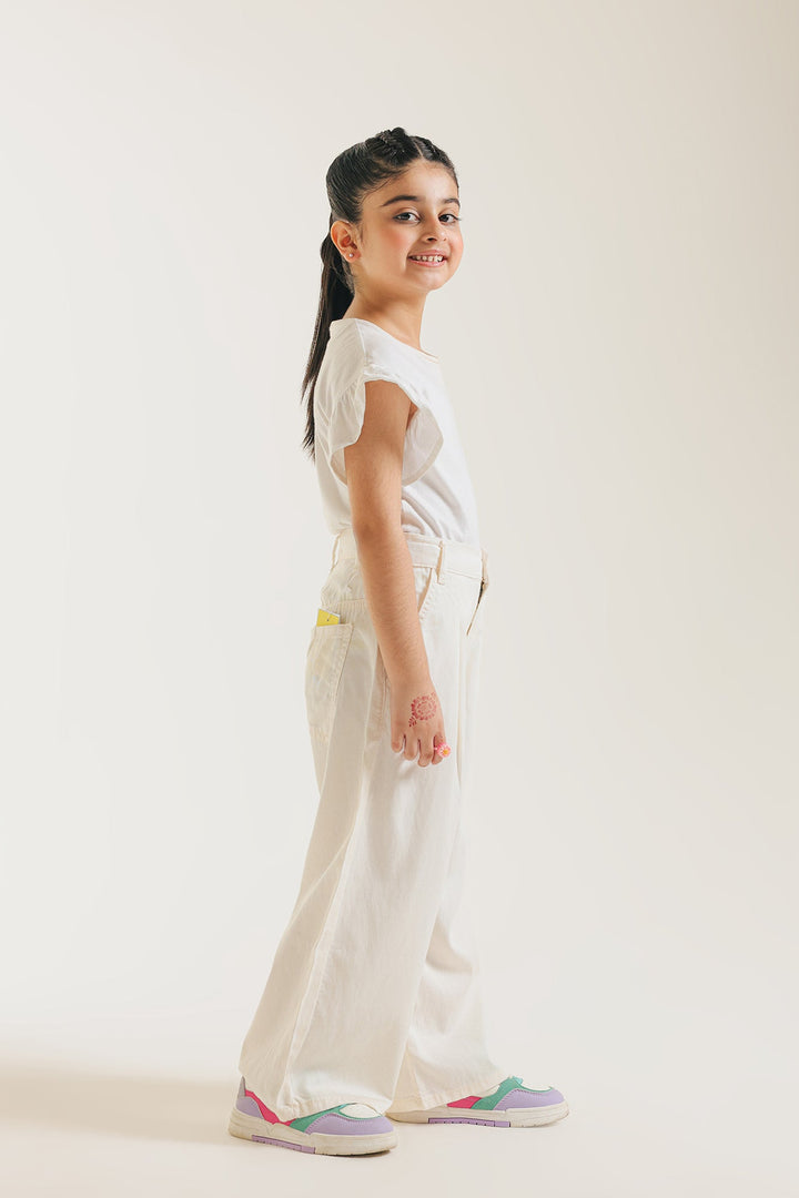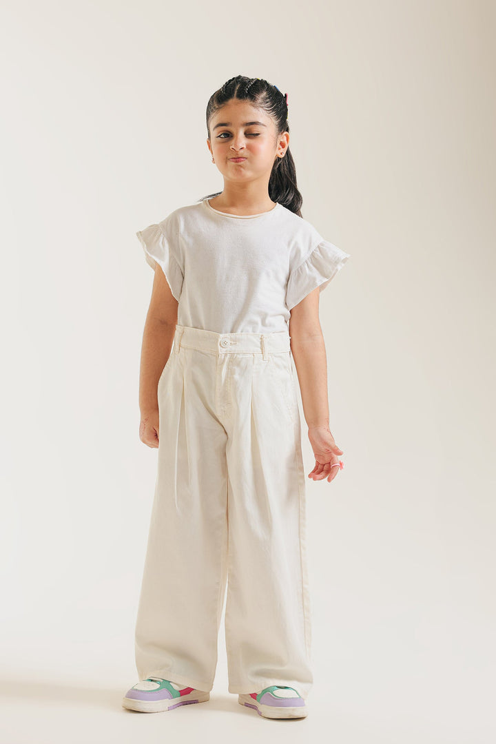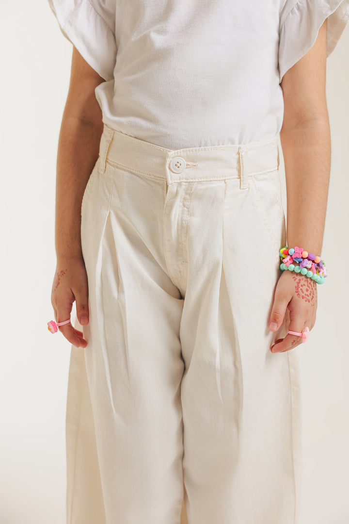 Discover effortless style and ultimate comfort with our wide-leg trousers in a versatile off-white hue. Crafted from soft, breathable cotton, these pants feature a relaxed, flowing silhouette with pleat details that offer a sophisticated yet laid-back look. The elasticated back waistband ensures a comfortable fit for all-day wear. Perfect for pairing with any top, they're an essential addition for a chic and comfortable wardrobe.