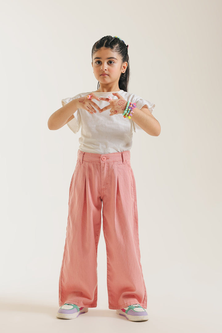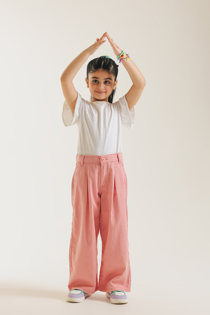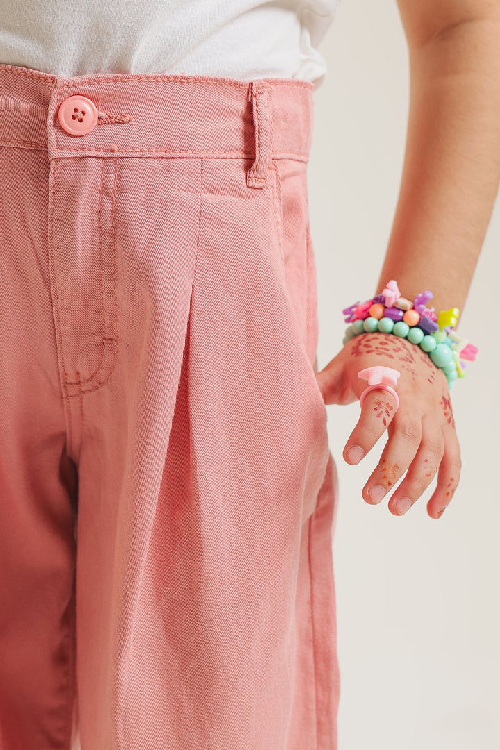 Discover effortless style and ultimate comfort with our wide-leg trousers in baby pink hue. Crafted from soft, breathable cotton, these pants feature a relaxed, flowing silhouette with pleat details that offer a sophisticated yet laid-back look. The elasticated back waistband ensures a comfortable fit for all-day wear. Perfect for pairing with any top, they're an essential addition for a chic and comfortable wardrobe.