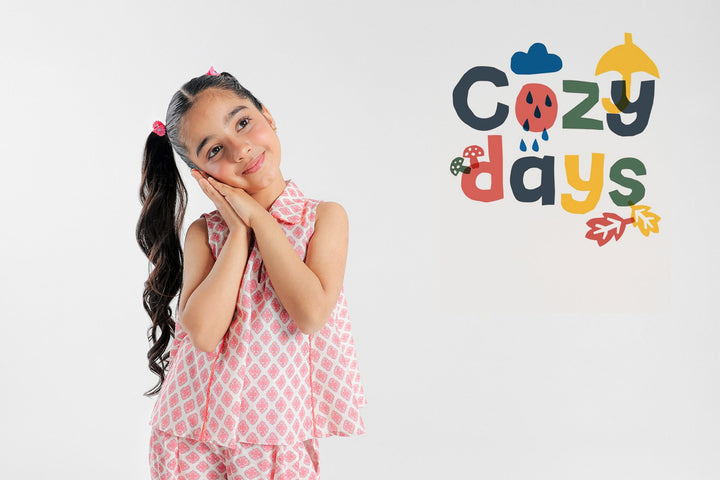 A chic and trendy composition is portrayed on this fascinating ensemble rendered in an appealing tea pink hue. It features an appealing top crafted in a contemporary sleeveless silhouette and adorned with trendy floral designs printed in vibrant hues. Paired with a matching printed trouser, let your girls style this artistic outfit at fun gatherings.