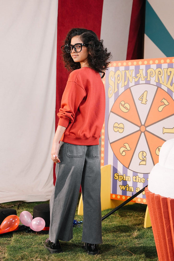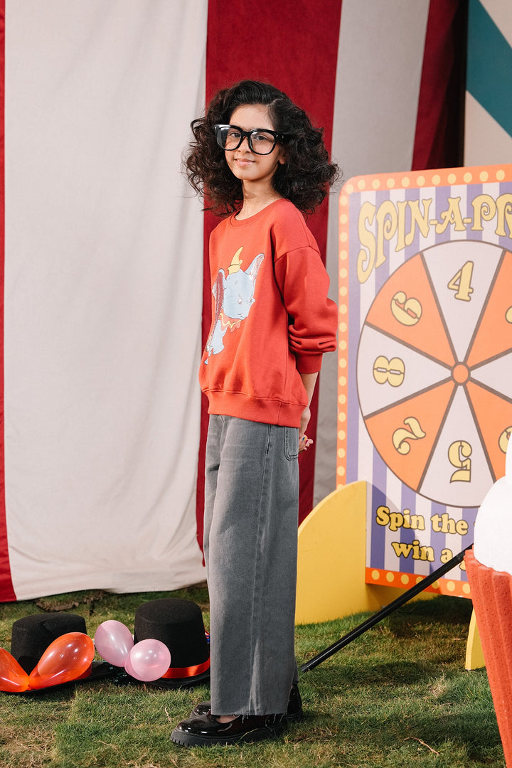 A quirky composition is portrayed on this trendy sweatshirt rendered in an appealing red color. Enhanced with adorable elephant illustrations printed in vibrant hues and embellished with scintillating sequins at front, this chic sweatshirt is a perfect option for fun gatherings this winter season.