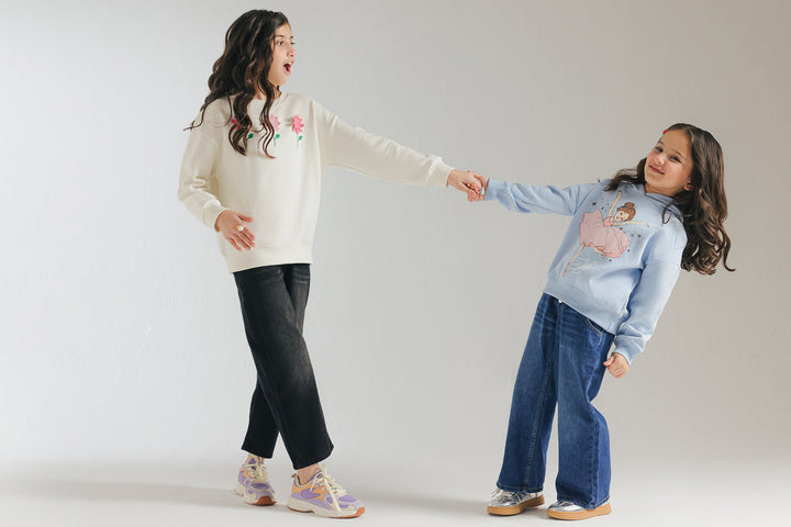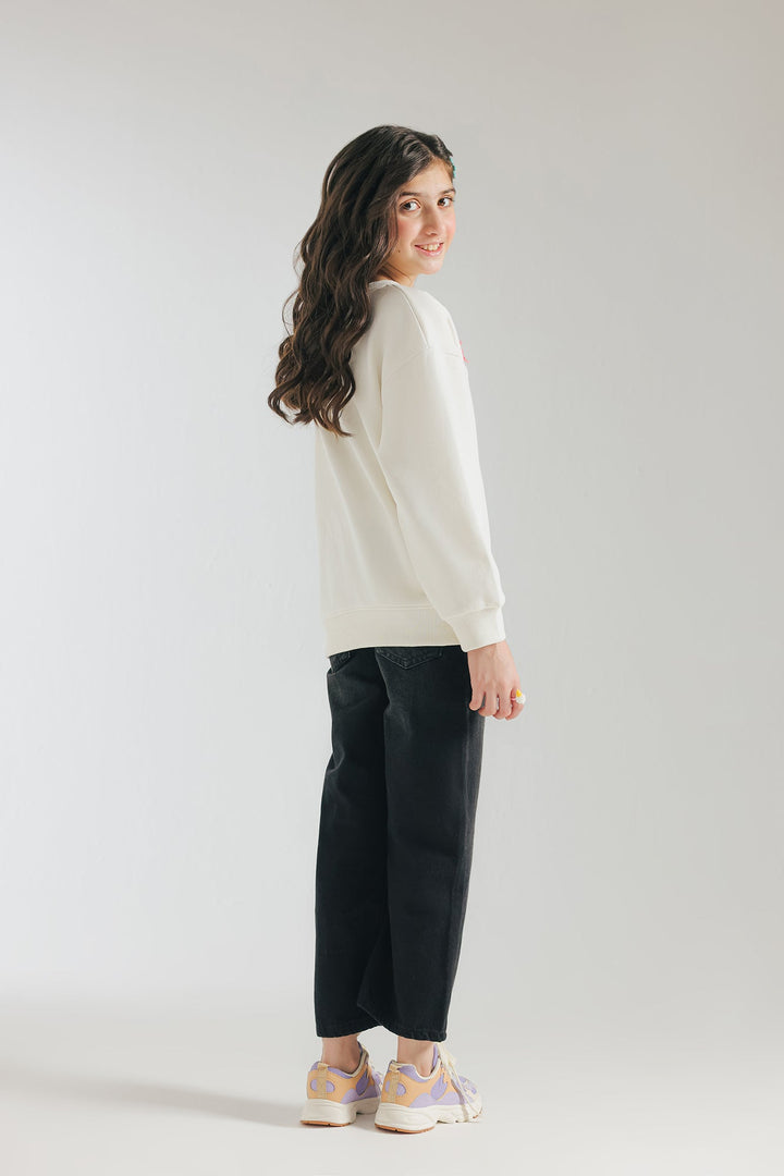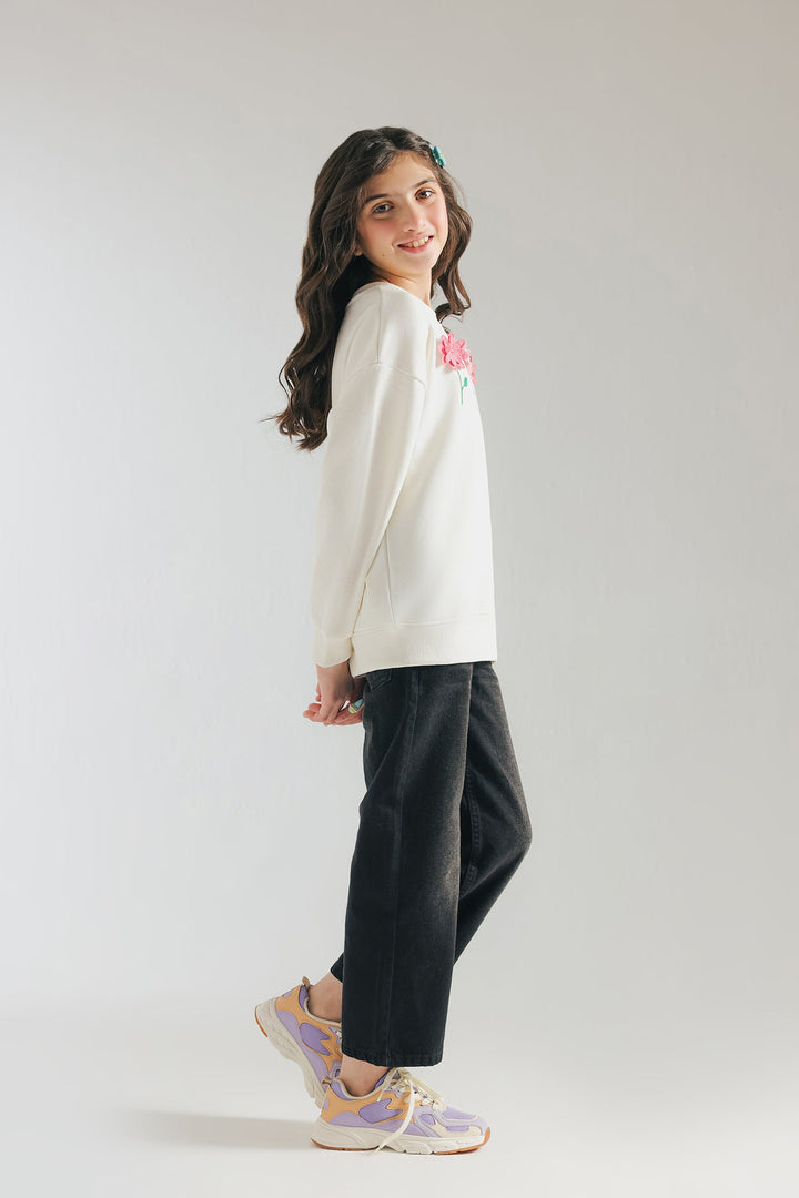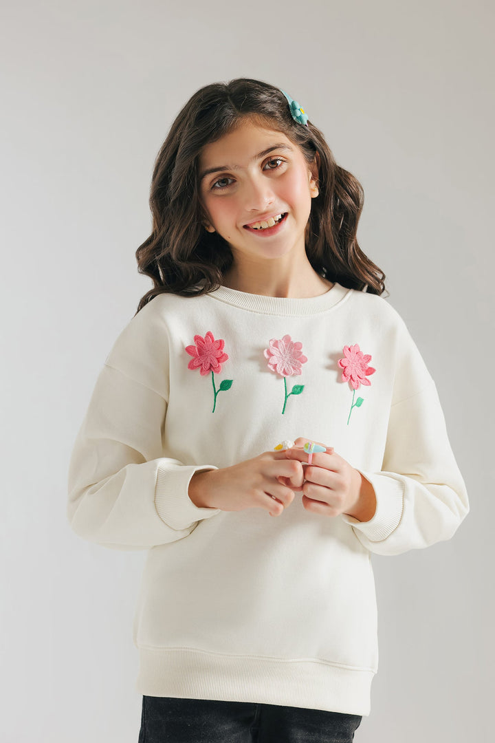 An elegant composition is portrayed on this trendy sweatshirt rendered in a creamy off white color. Enhanced with adorable floral illustrations designs portrayed in a 3d look in vibrant colors at front. This contemporary sweatshirt is a perfect option for fun gatherings this winter season.