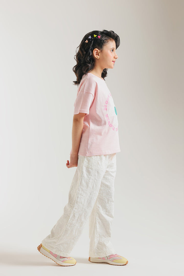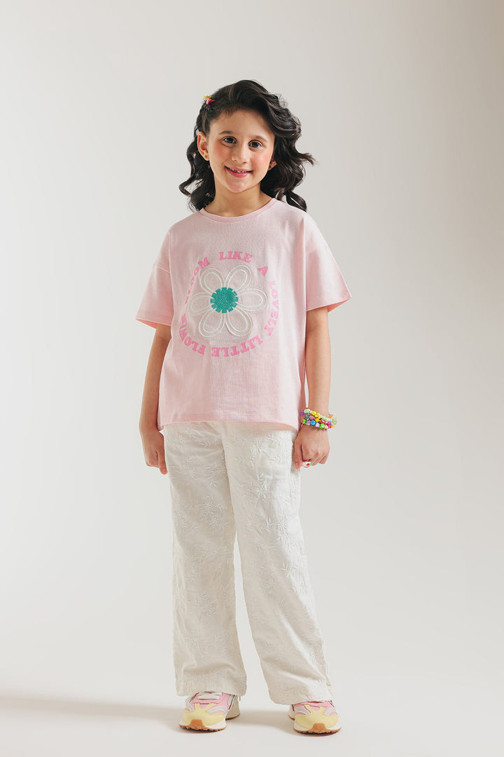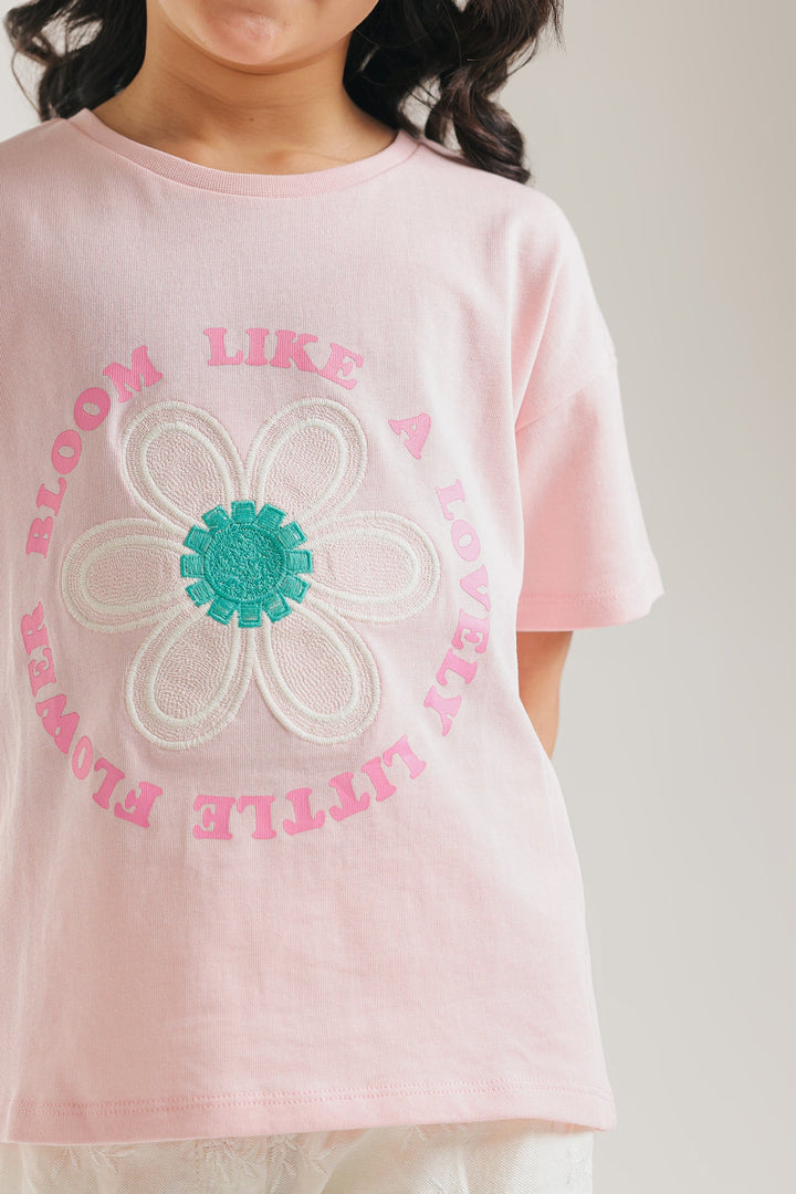 Let your little one bloom in style with this charming light pink tee, featuring a delightful floral graphic for a touch of everyday whimsy! This short-sleeved top showcases a prominent white daisy with a teal center, framed by the sweet message "BLOOM LIKE A LOVELY LITTLE FLOWER" in a fun pink font. Crafted for a relaxed fit, it ensures breathable comfort for all their adventures. This tee is ideal for casual outings, playdates, or adding a distinctive and joyful flair to your child's everyday style.