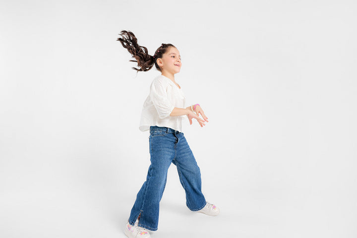 This elegant top is ideal for your girls to style this season. Crafted with a graceful silhouette, its beautiful off white color is enhanced with adorable floral designs embroidered with schiffli techniques. Add a touch of fun and sophistication to her wardrobe.
