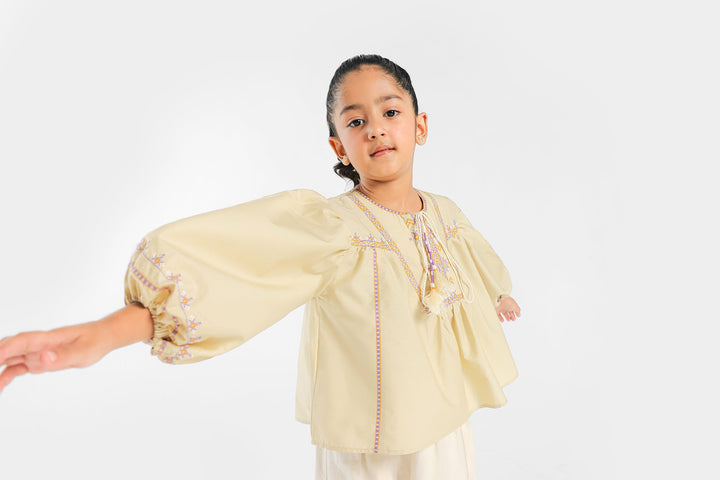 A classically chic design is portrayed on this elegant top rendered in a vibrant lime shade. Crafted in a contemporary kimono silhouette and adorned with intricate embroidery with floral designs illustrated in vibrant hues, let your kids look trendy this season in this statement top.