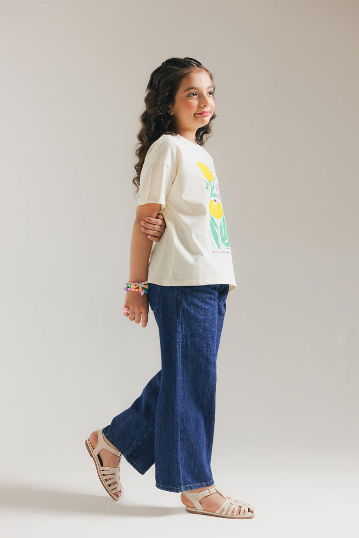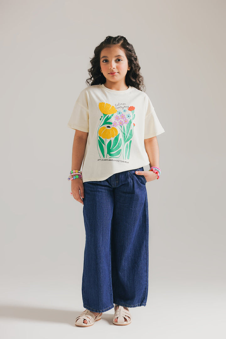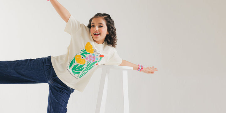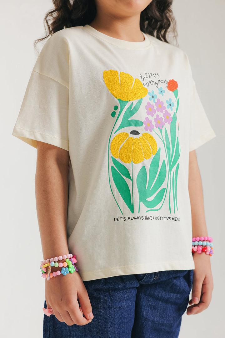 A classy yet contemporary top rendered in a light vanilla ice white color. The perfect addition to your wardrobe, this top exudes elegance and sophistication with beautiful floral embroidery and graphic prints at front in vibrant hues, and is crafted with quality and comfort in mind. Elevate your kids style with effortless ease.
