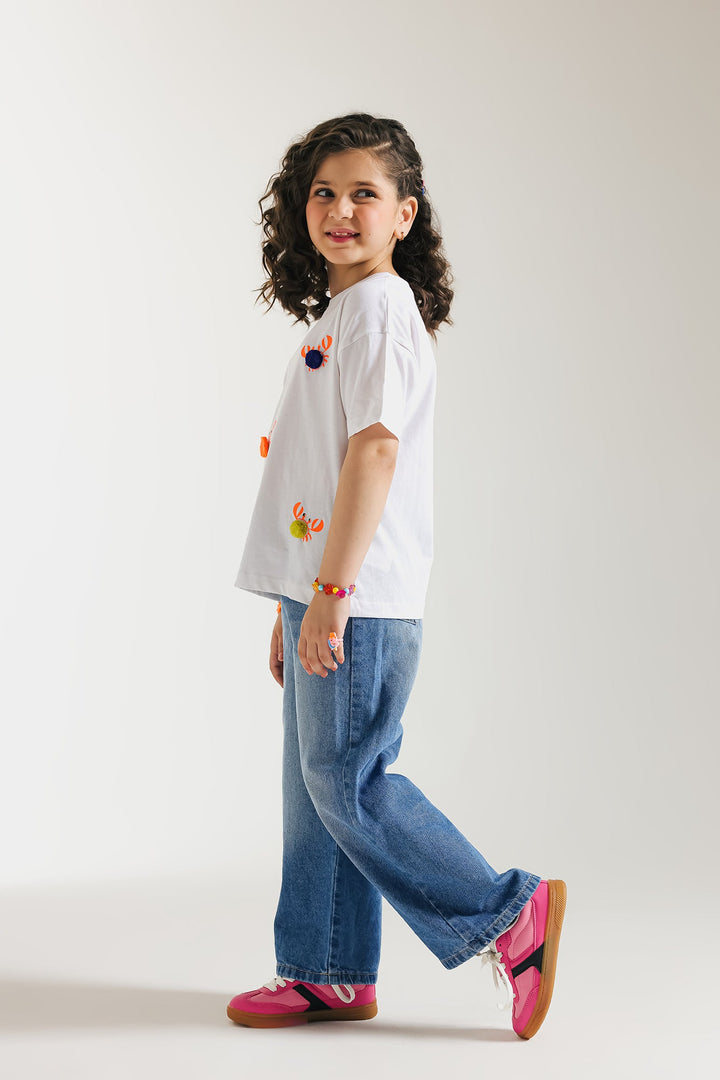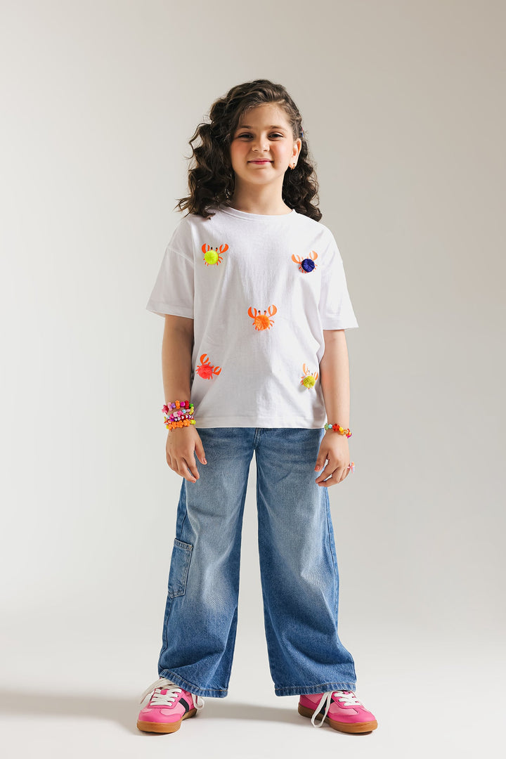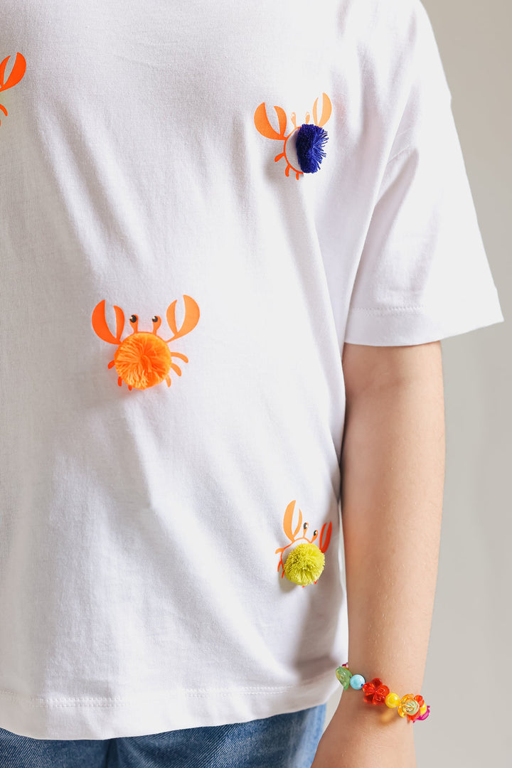 A classy yet contemporary top rendered in a mesmerizing white color. The perfect addition to your wardrobe, this top exudes elegance and sophistication with captivating Scorpio illustrations printed in vibrant hues and enhanced with threaded pom pom, and is crafted with quality and comfort in mind. Elevate your kids style with effortless ease.