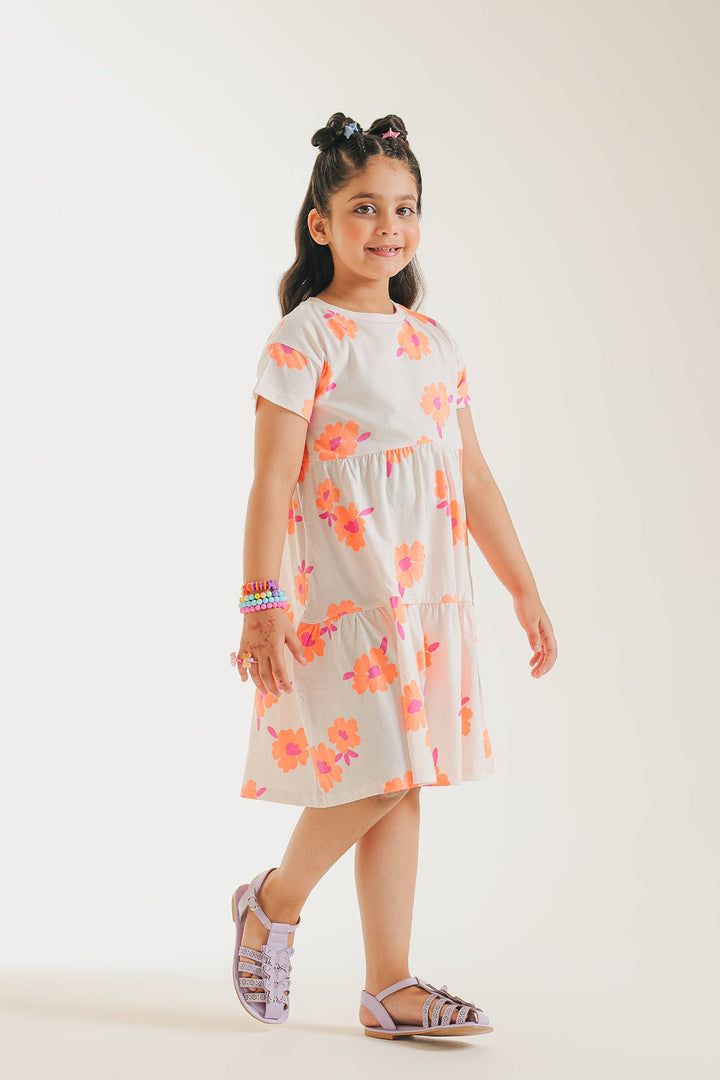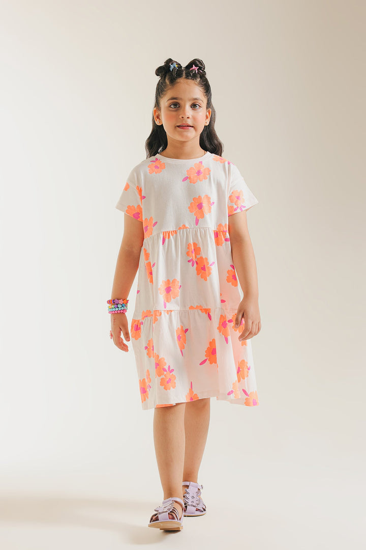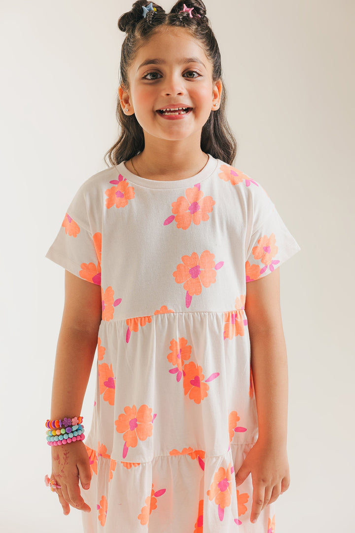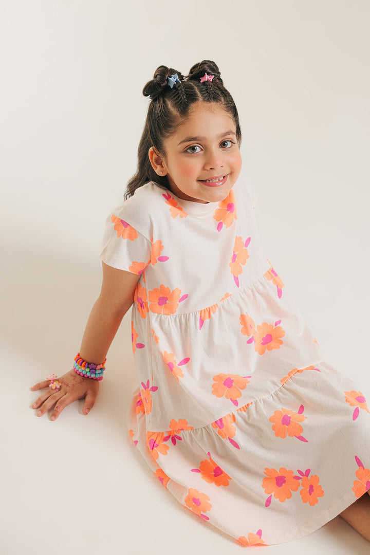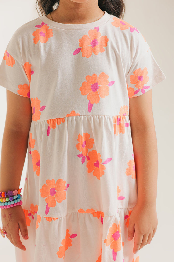 Let her twirl and play in our delightful orange blossom tiered dress! This charming white dress features a vibrant, all-over print of cheerful orange and pink flowers, bringing a burst of sunshine to her day. The comfortable, relaxed fit and easy-to-wear tiered design make it perfect for endless adventures and carefree fun. Crafted from soft, breathable fabric, it's an ideal choice for sunny playdates, casual outings, or simply embracing the joy of childhood.