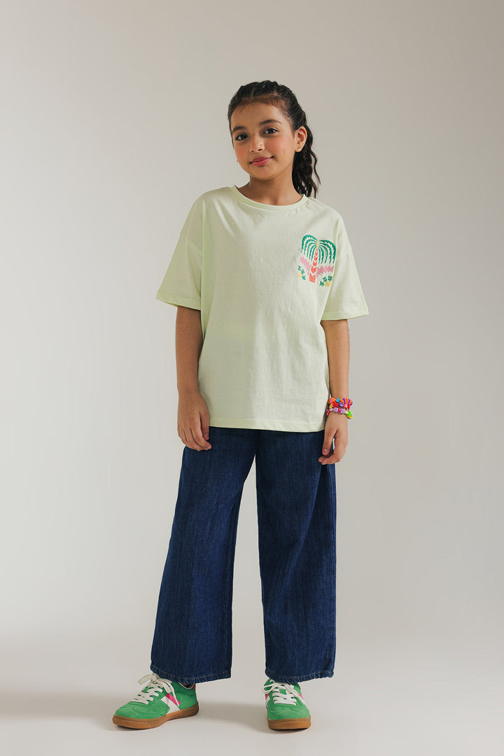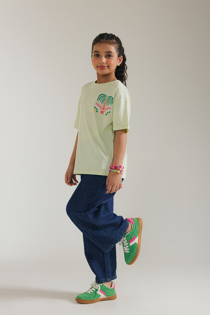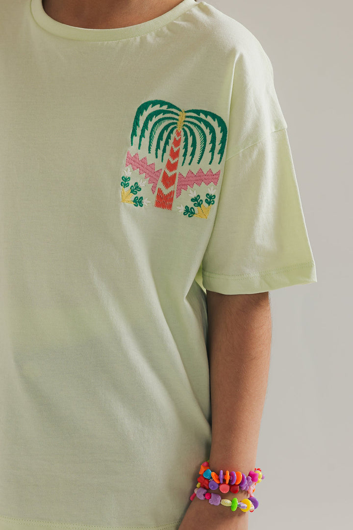 Keep it casual and fun with this light green top. The soft, cool mint hue is perfectly complemented by a playful embroidery featuring a vibrant palm tree design. This comfortable top with short sleeves is ideal for everyday adventures and adding a touch of sunshine to any look.