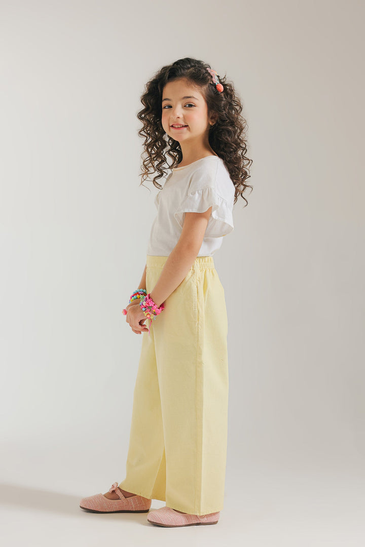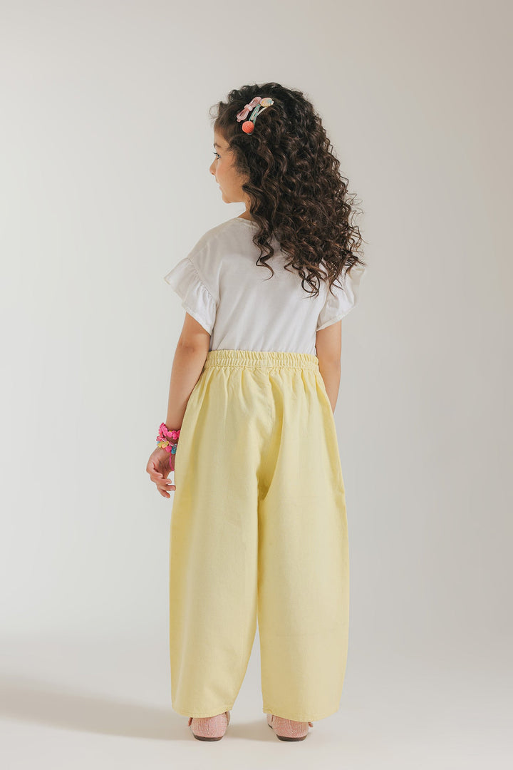 These pale yellow trouser boasts a simple and elegant design, perfect for any occasion. Made of high-quality fabric, it offers a comfortable fit and a flattering silhouette. Elevate your kid's wardrobe with this classic and versatile piece.