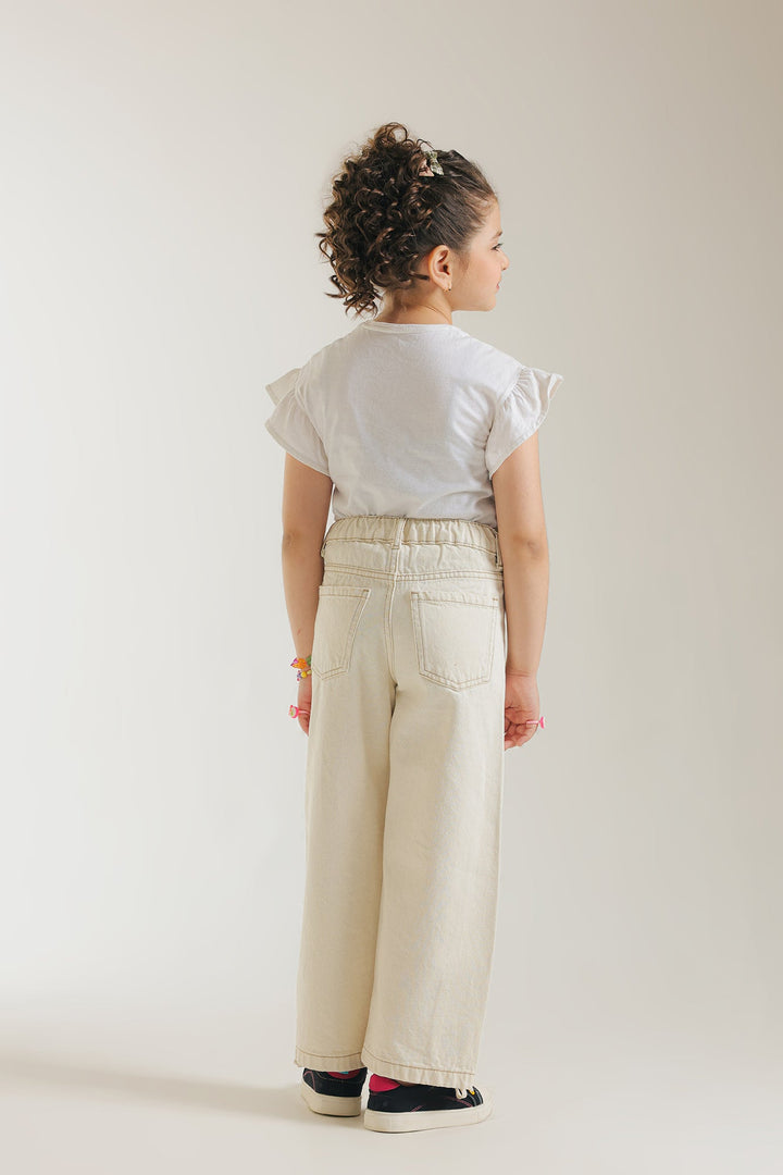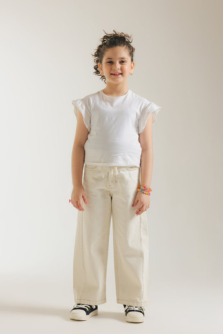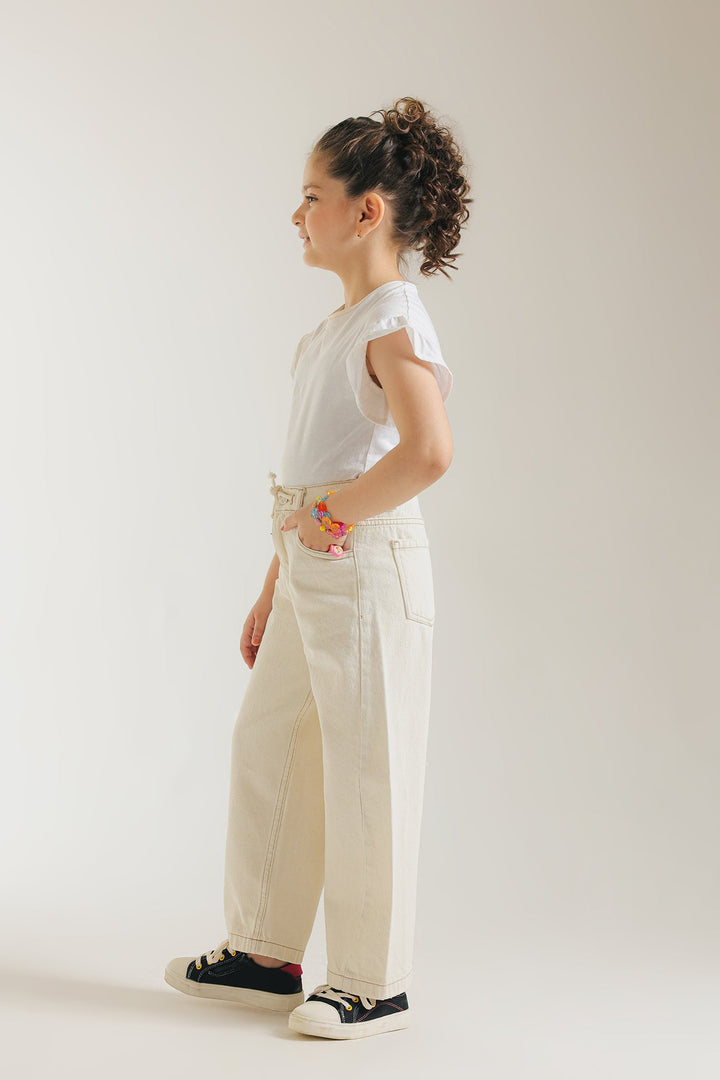 These stylish and comfortable straight fit pants that are a versatile addition to any young girl's wardrobe. The soft cream color offers a neutral base that pairs easily with a variety of tops. Designed with a relaxed, wide-leg silhouette, these pants provide freedom of movement and a trendy look.