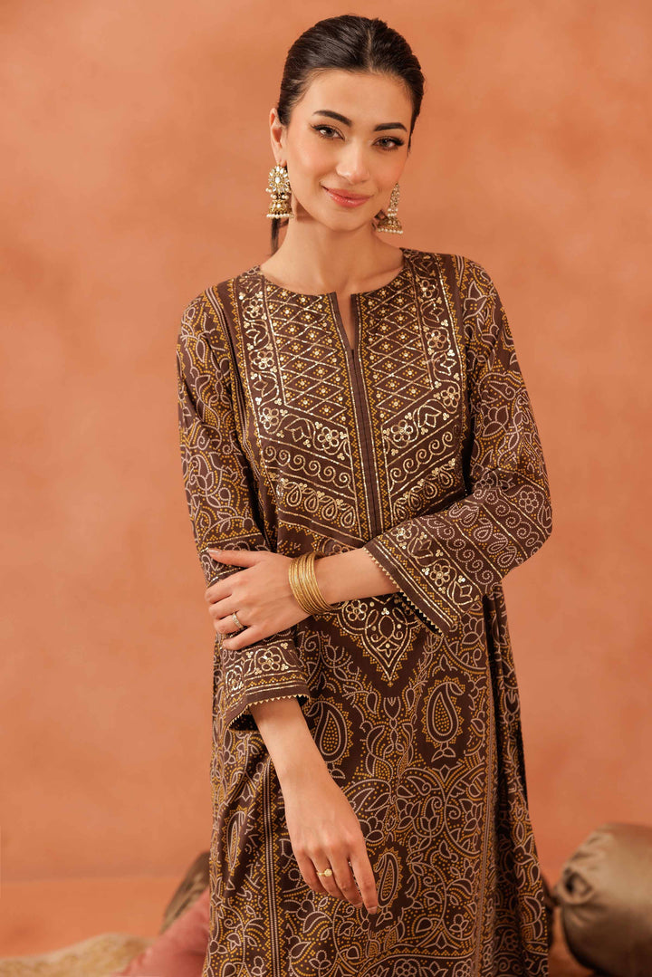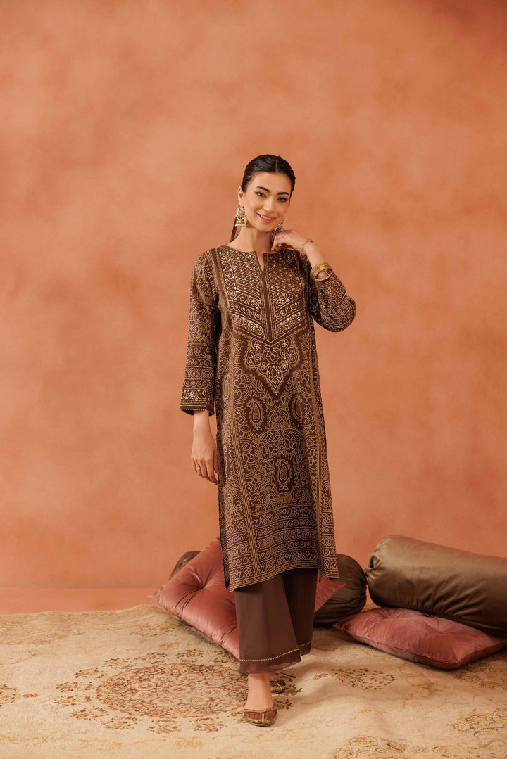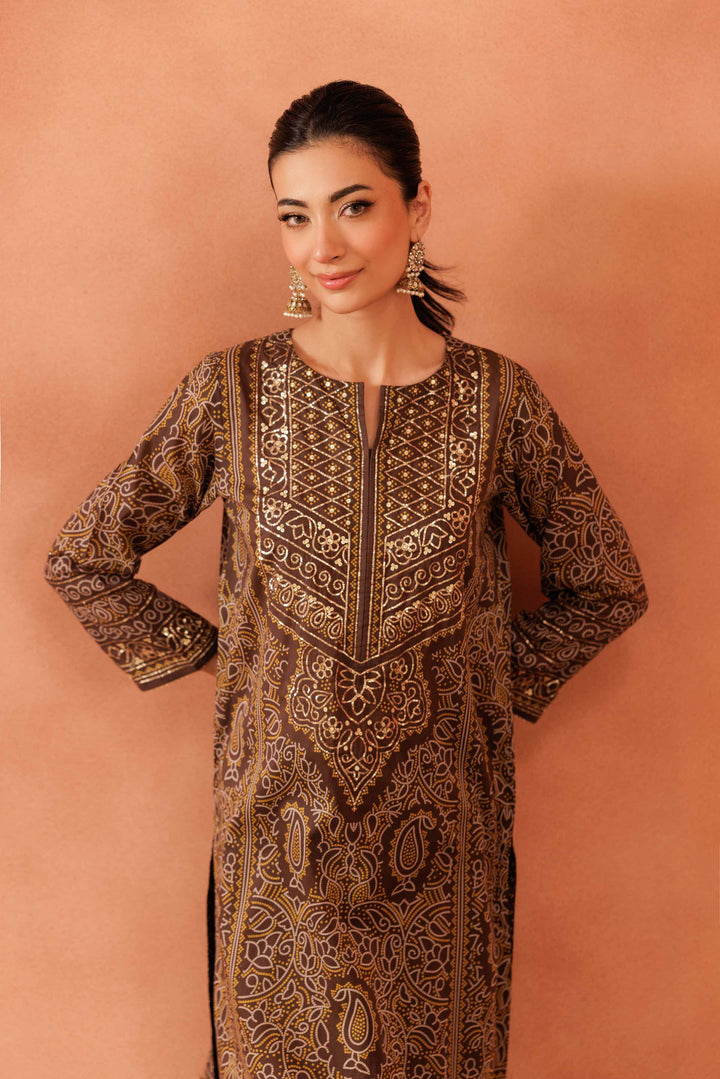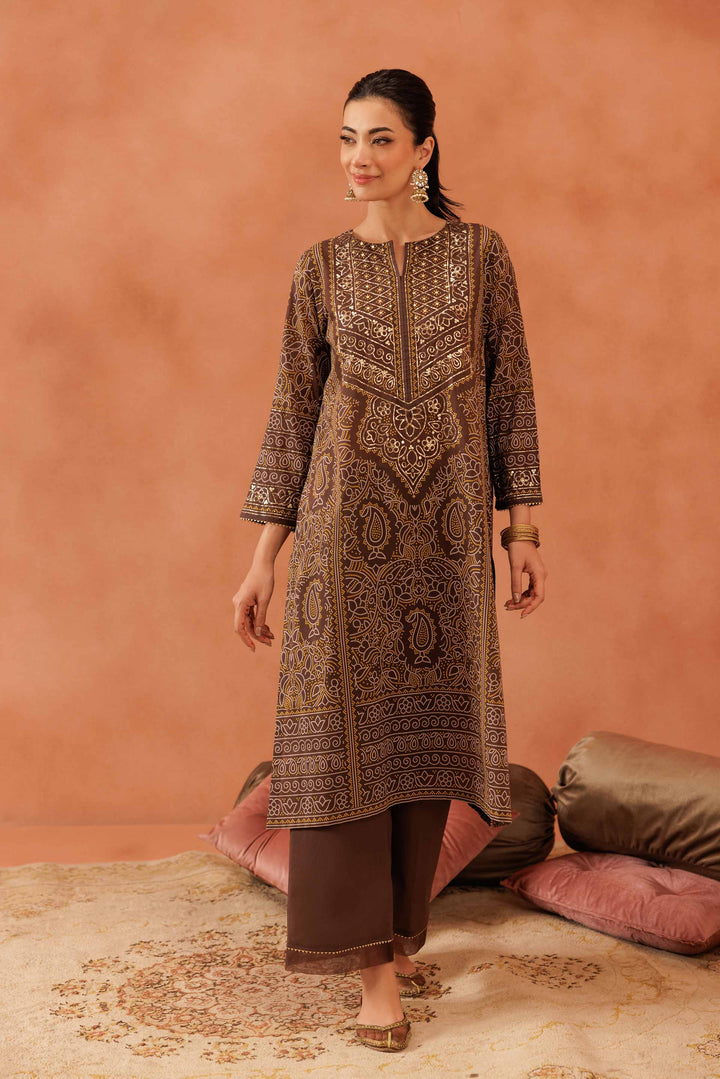Make a truly elegant statement with this printed two-piece suit from the latest luxury pret summer collection.