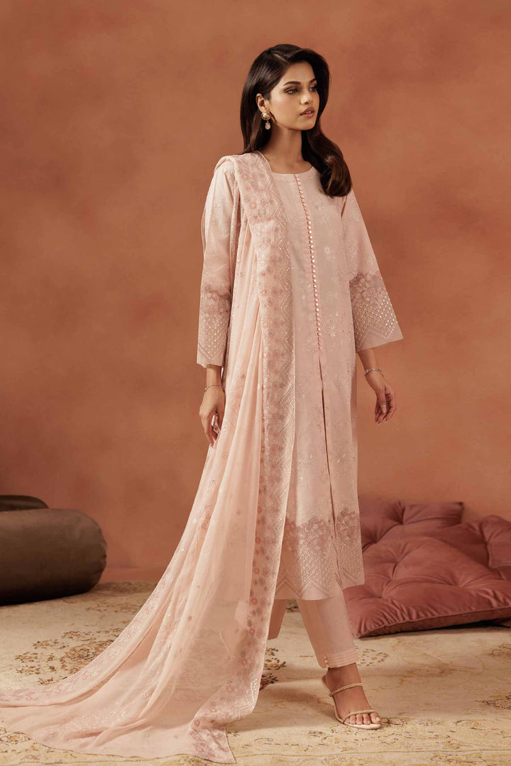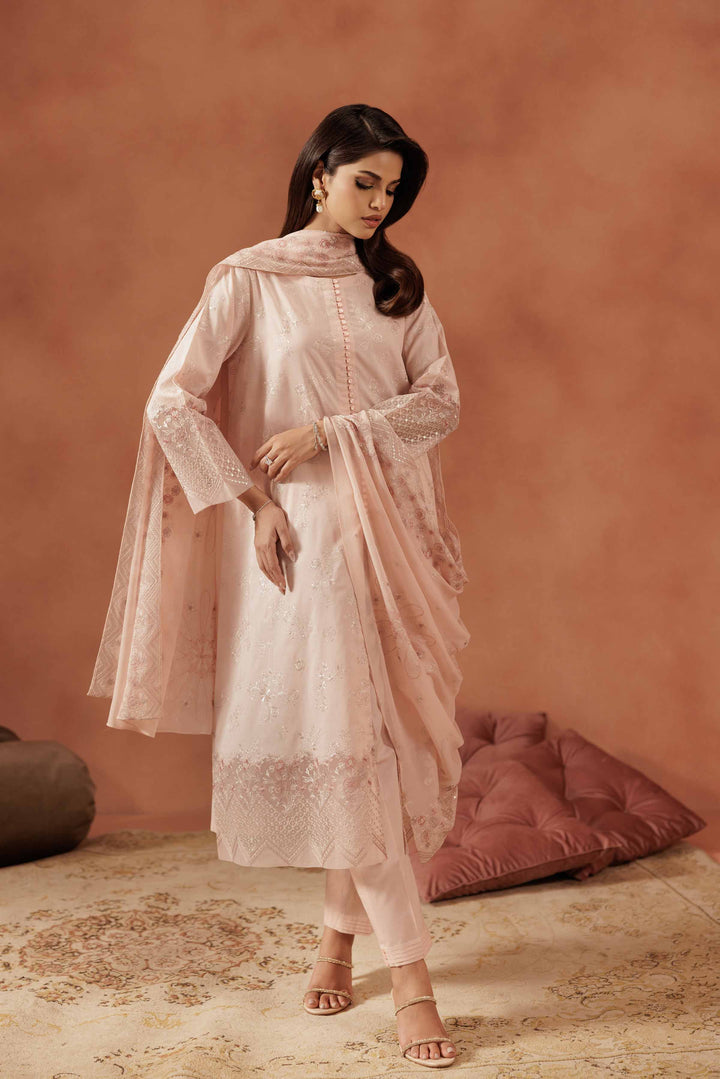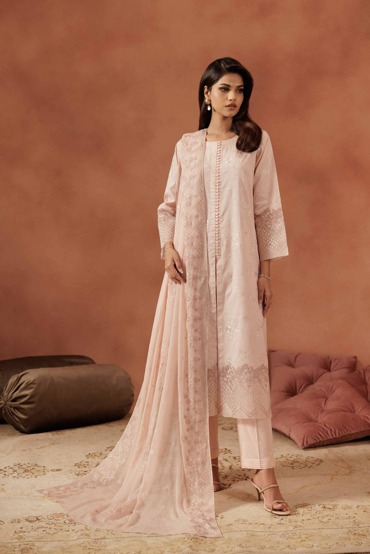 Make a truly elegant statement in this embroidered three-piece suit from the latest Luxury Pret Summer Collection, featuring intricate details and graceful design.