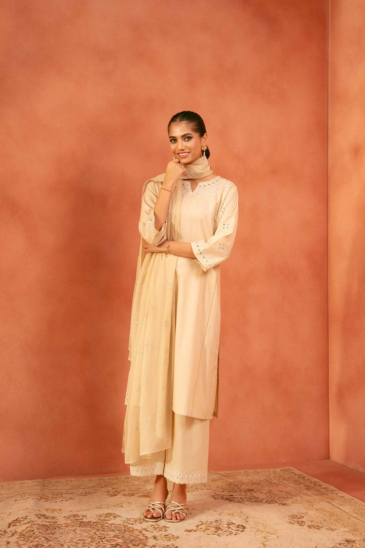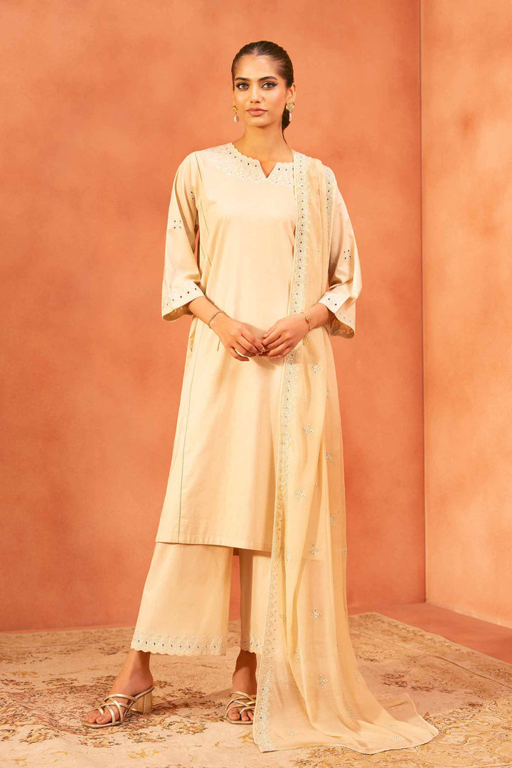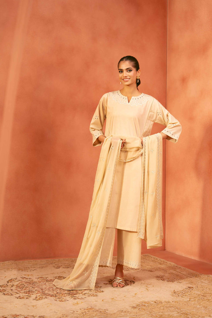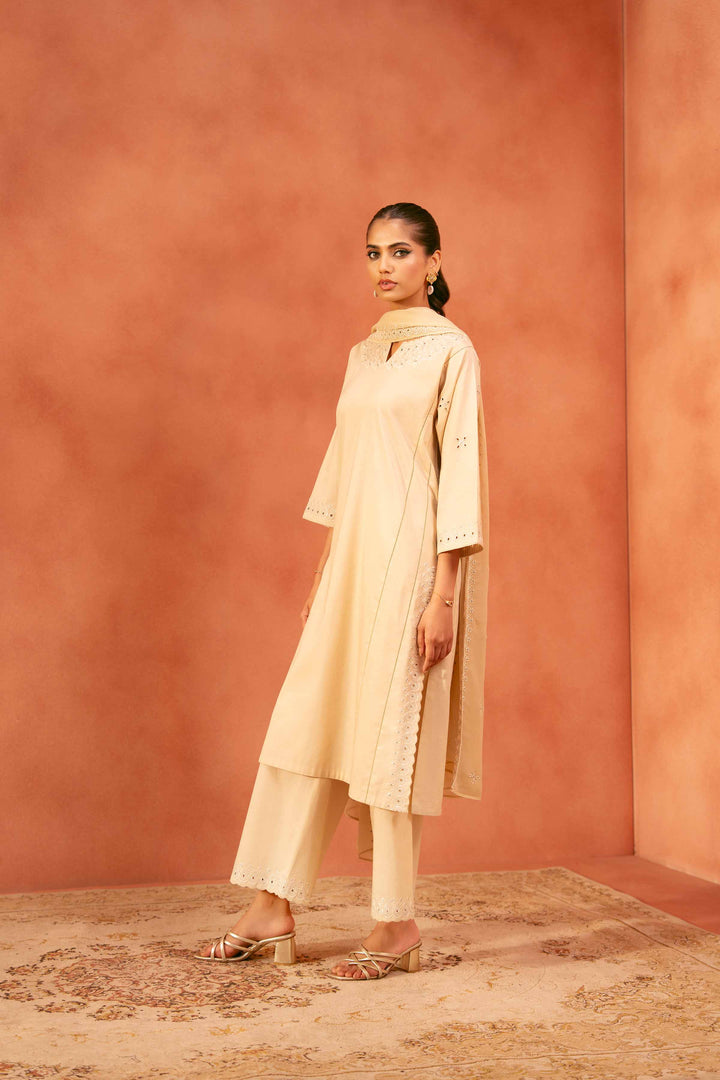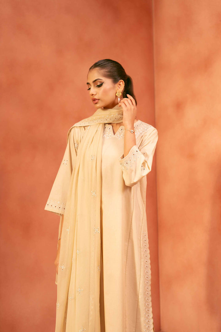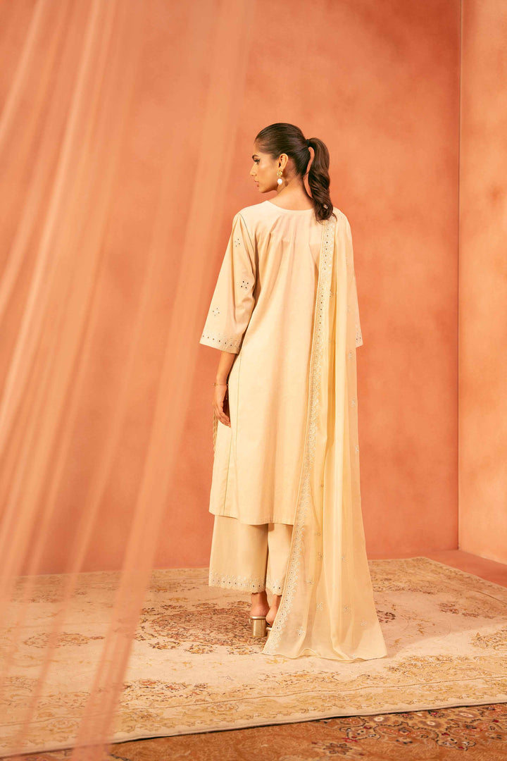 Make a truly elegant statement in this embroidered three-piece suit from the latest Luxury Pret Summer Collection, blending classic craftsmanship with modern summer flair.
